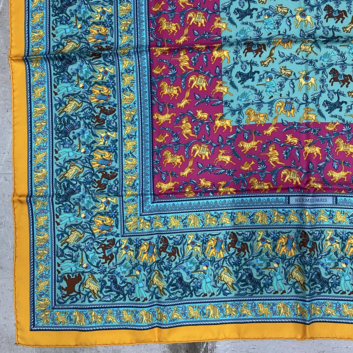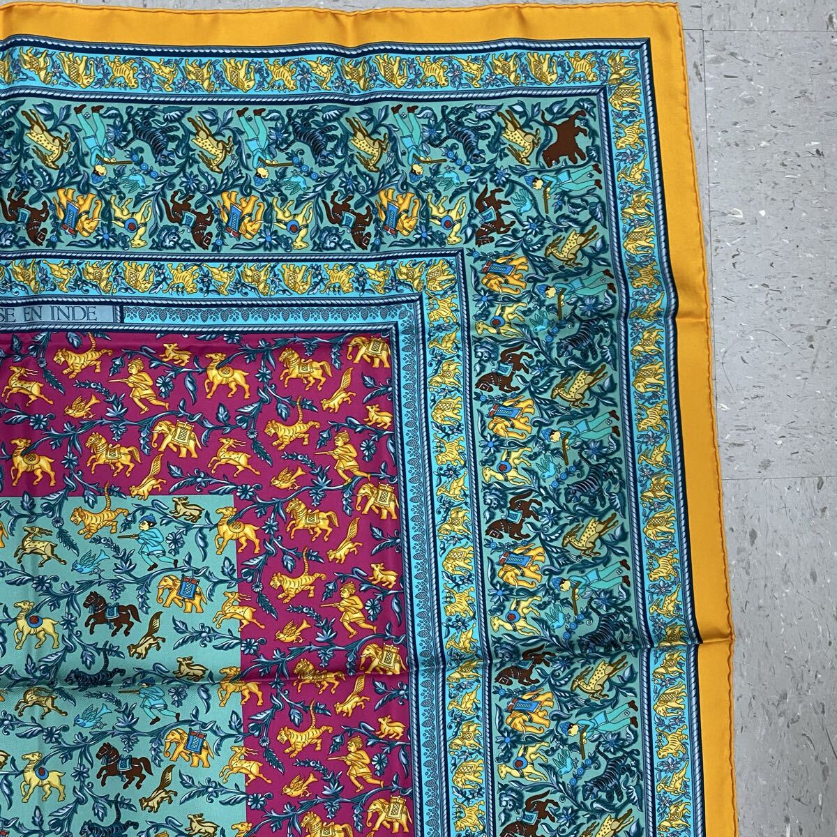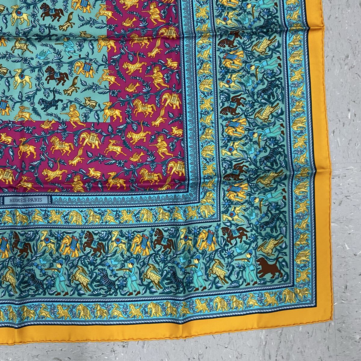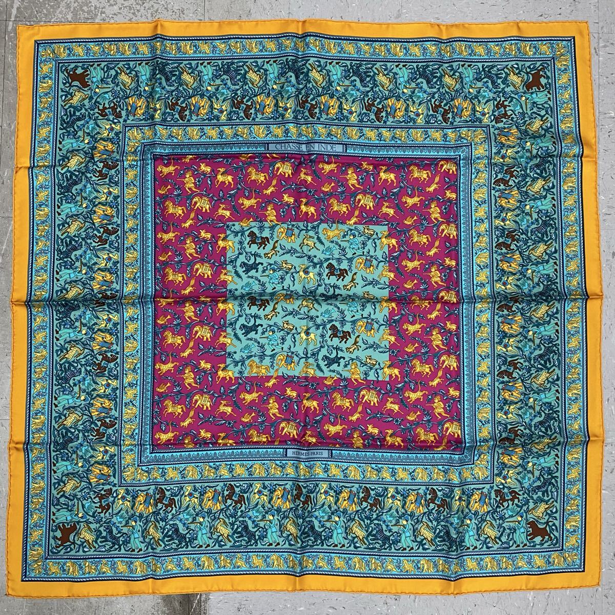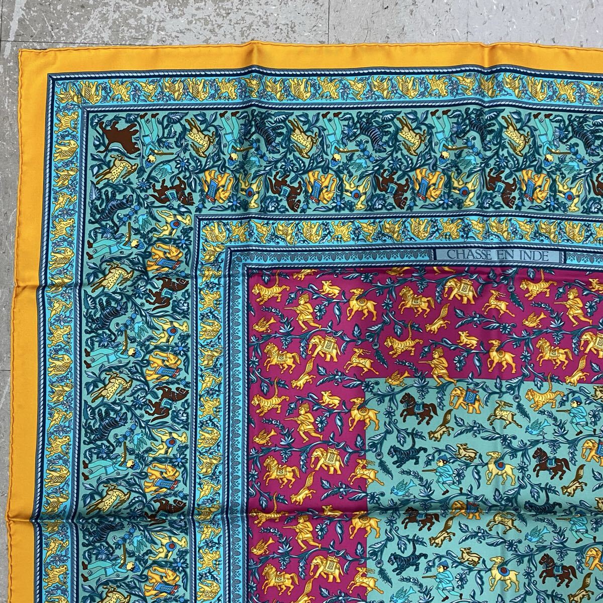 【HERMES】エルメス カレ90 CHASSE EN INDE シルク オレンジ グリーン レディース 34