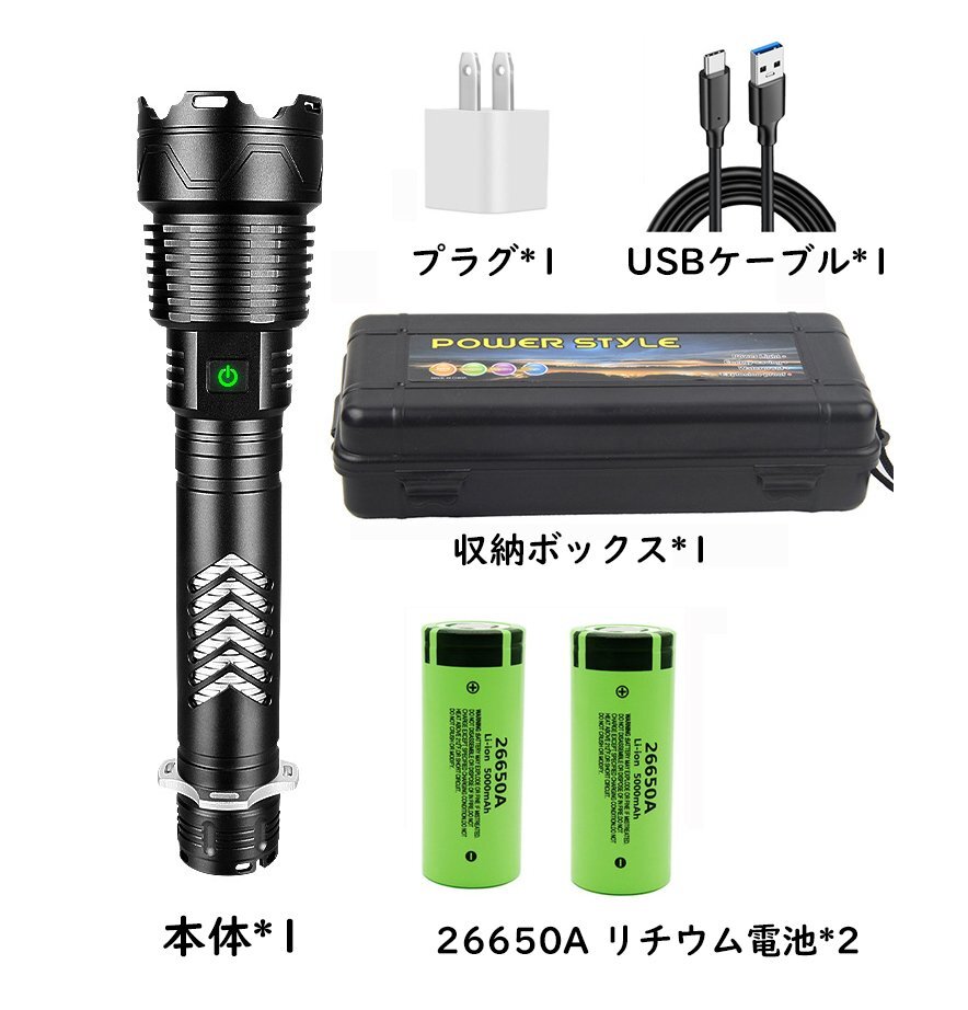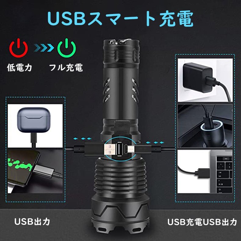 懐中電灯 led 強力 ズーム USB充電式 XHP160.2 LED 20000ルーメン IPX67防水 キャンプ 登山 用品 防災 護身用 軍用 グッズ hw738