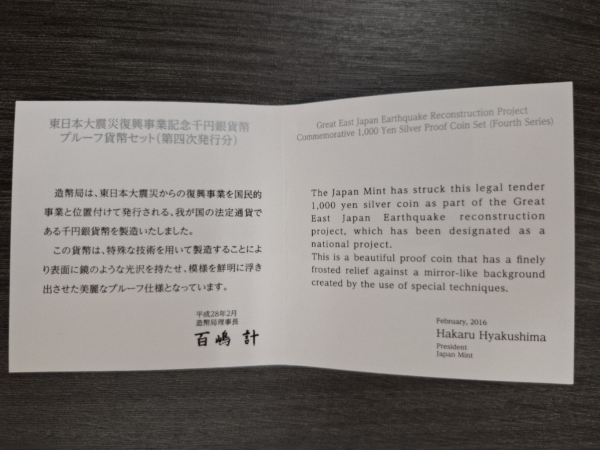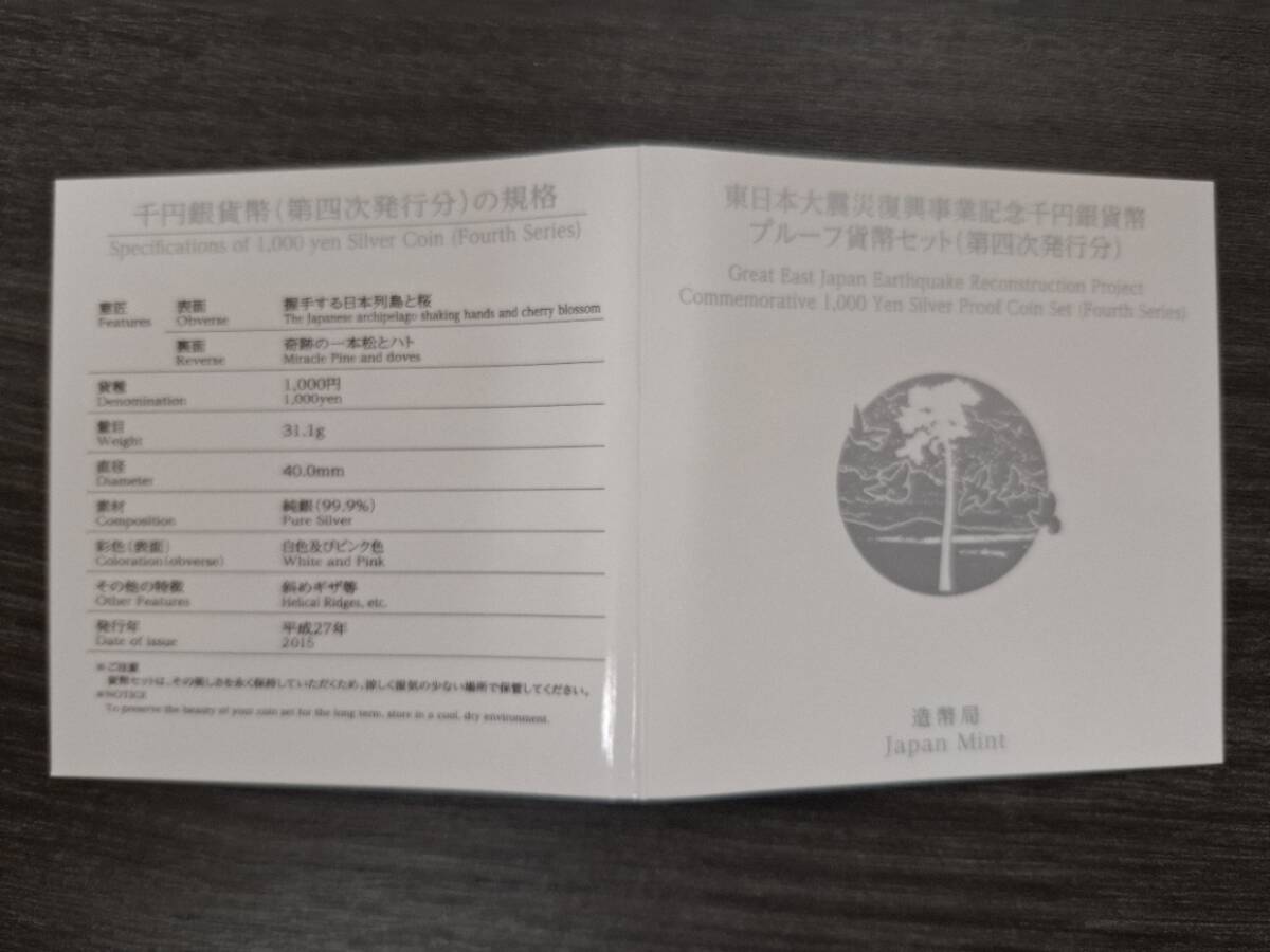 【銀貨無し】東日本大震災復興事業記念 千円銀貨プルーフ貨幣セット 造幣局 Japan Mint 平成27年 2015