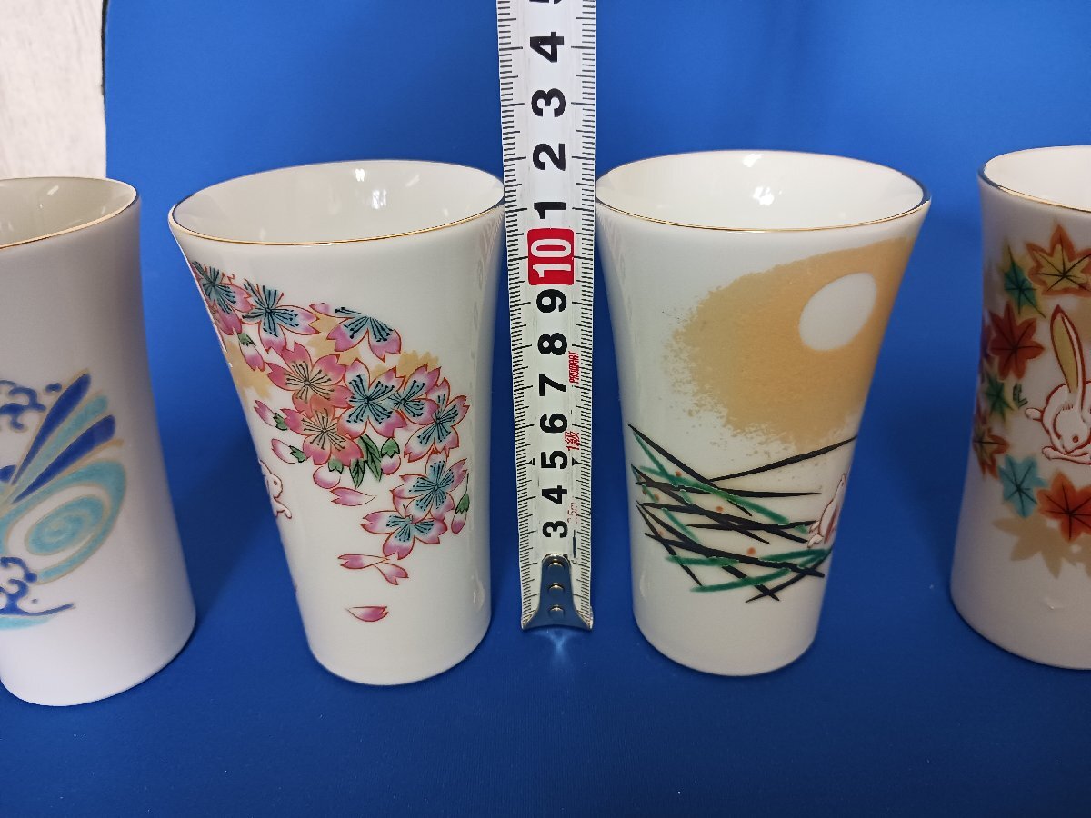 九谷焼 九谷暁堂 春夏秋冬月夜 ウサギ湯呑揃 5客セット(現状品)