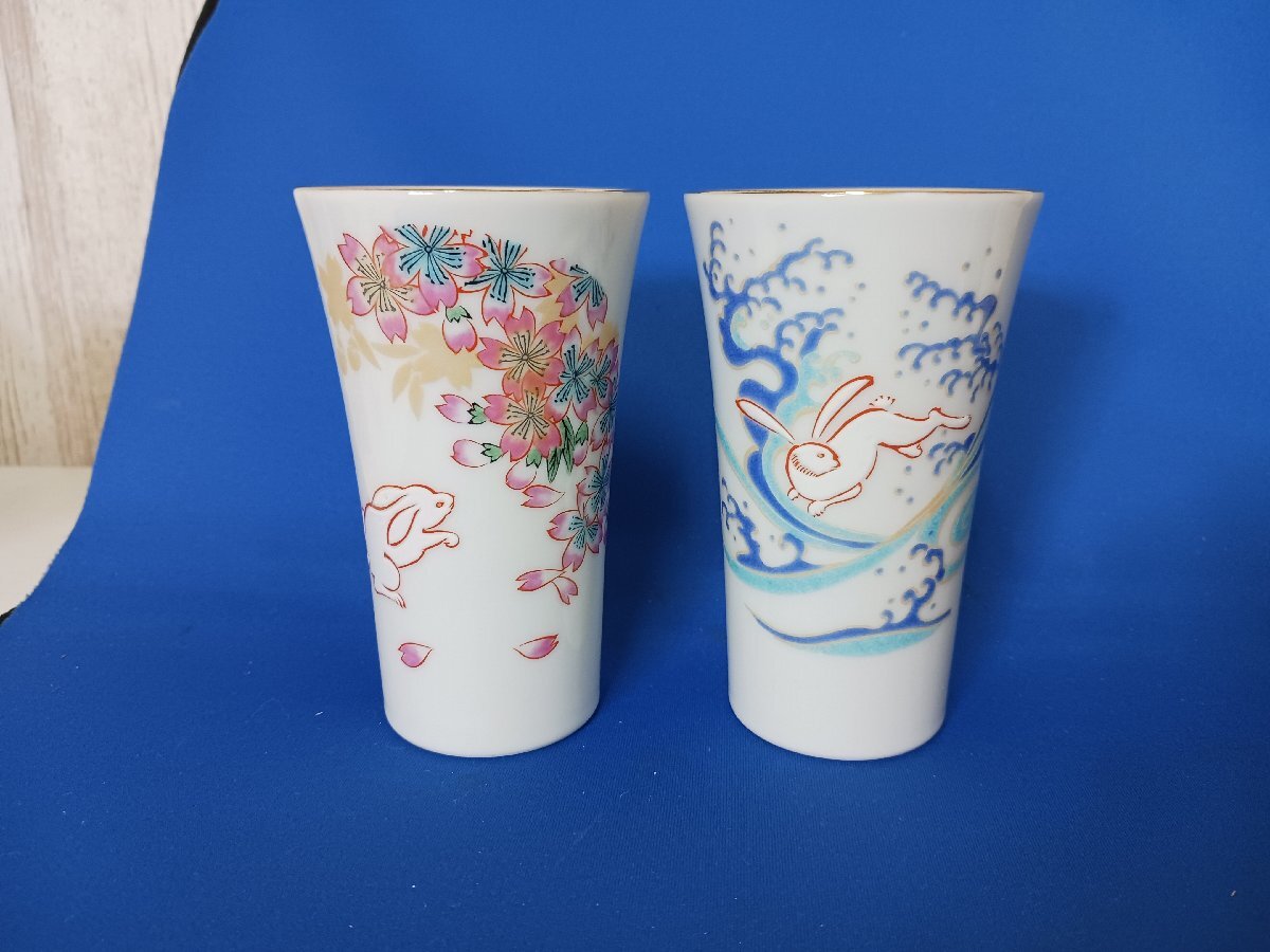 春夏秋冬と月夜にうさぎが居るかわいいデザインの湯呑です。