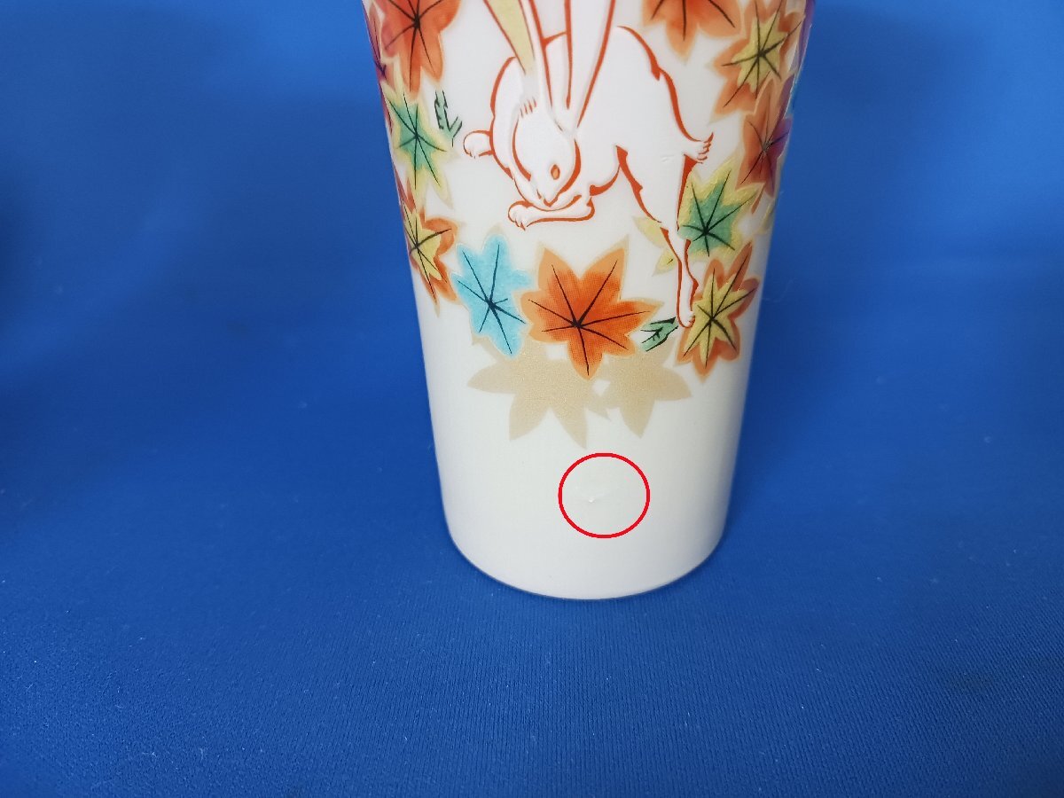 月夜のうさぎの湯呑に金彩スレと内側に塗りムラがございます。