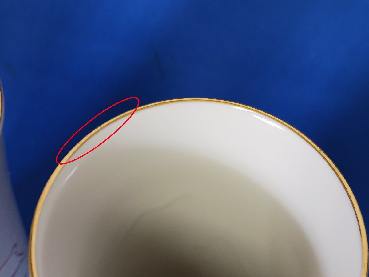 秋の絵柄の湯呑には製造工程上の跡のようなものがございます。