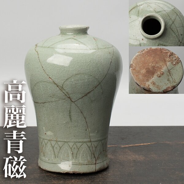 | 高麗青磁瓶子。高麗時代。箱無。 サイズは、幅約10.5cm、高さ約15.5cm。 全体に割れの直しがあります。 状態、詳細は画像でご確認ください。 |