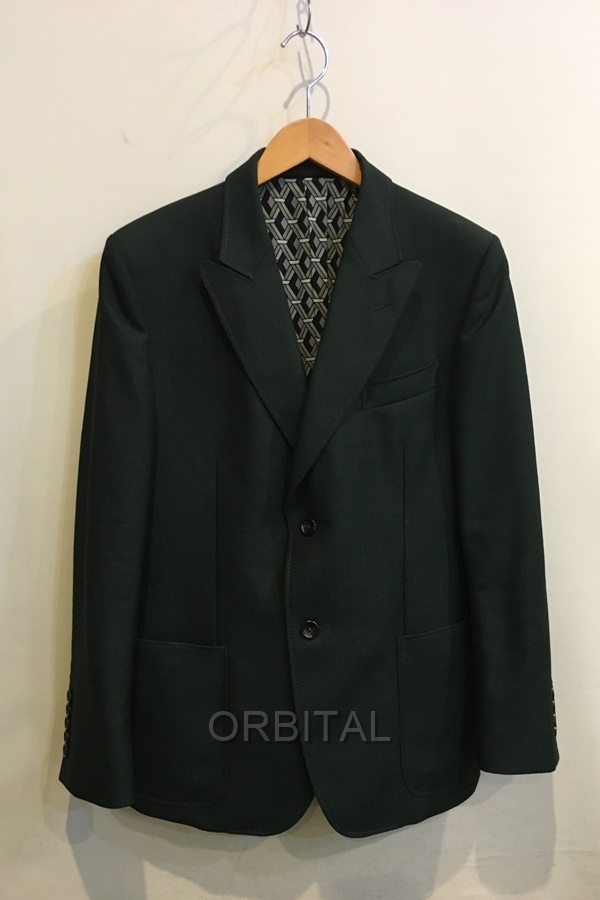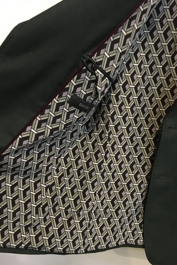 GUCCI グッチ ウールモヘヤ2Bテーラージャケット 裏地シルク柄 ダークグリーン メンズ 50R ケリングジャパン 良品