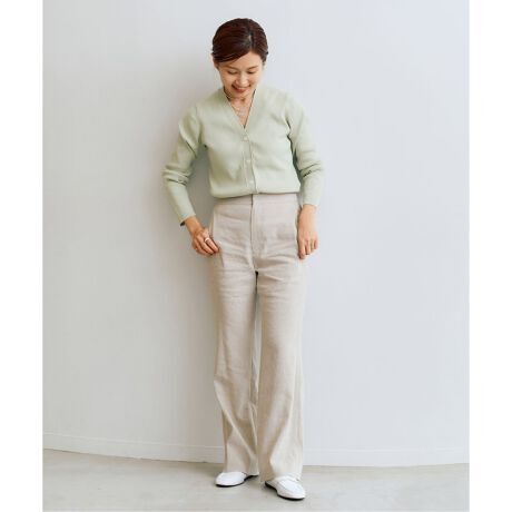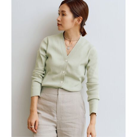 鎖骨や首回りが美しく見えるVネックの開き具合にこだわったカーディガン。