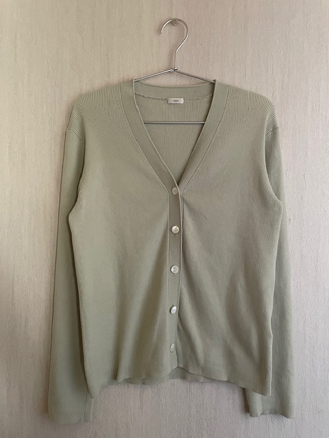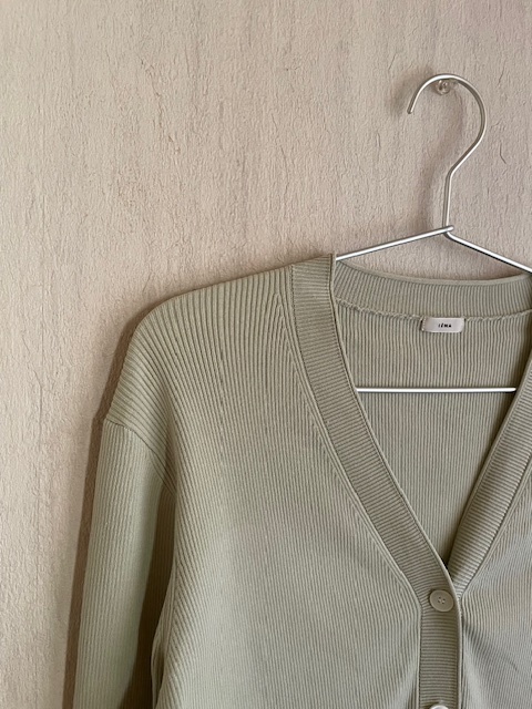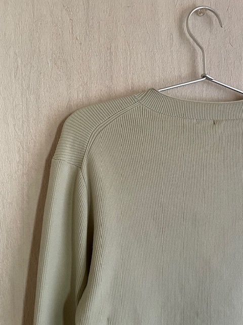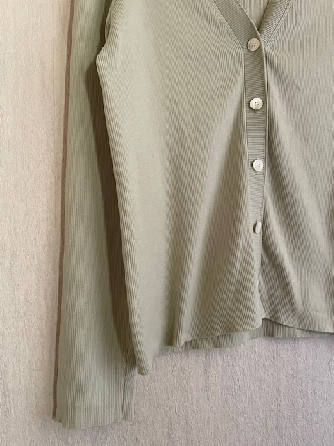 美品*IENA*イエナ*2X2リブ Vネックカーディガン*グリーン*17,600*