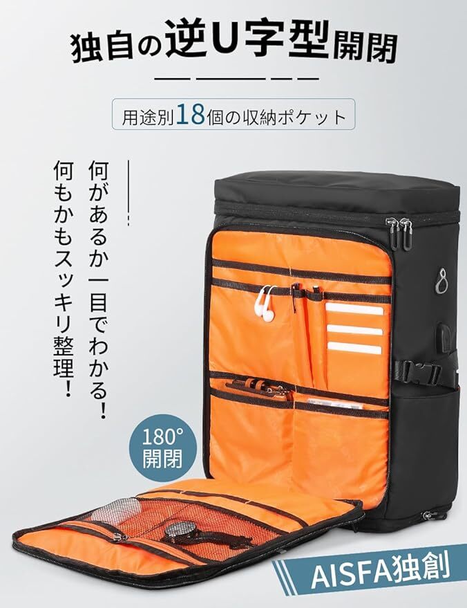レッド色 AISFA リュック メンズ リュックサック スクエア バックパック 17インチ PC ビジネス USB充電ポート付き 30L 大容量