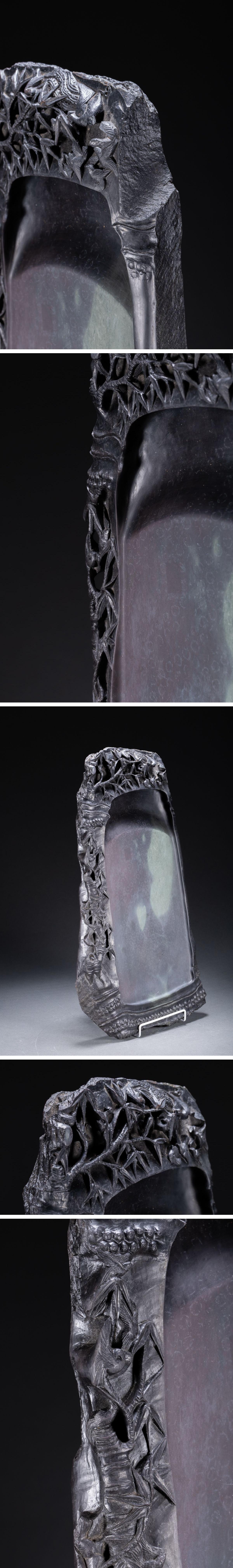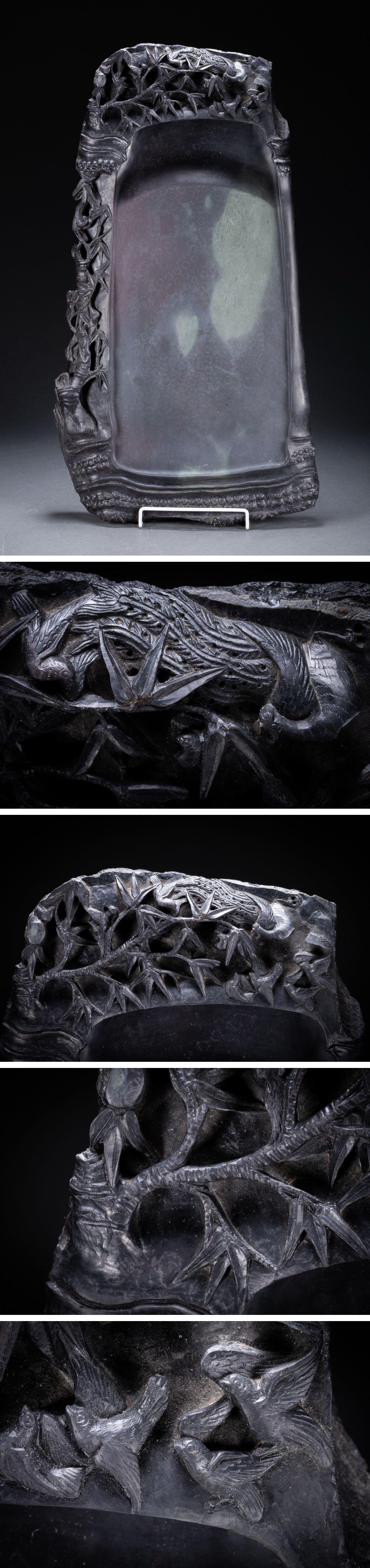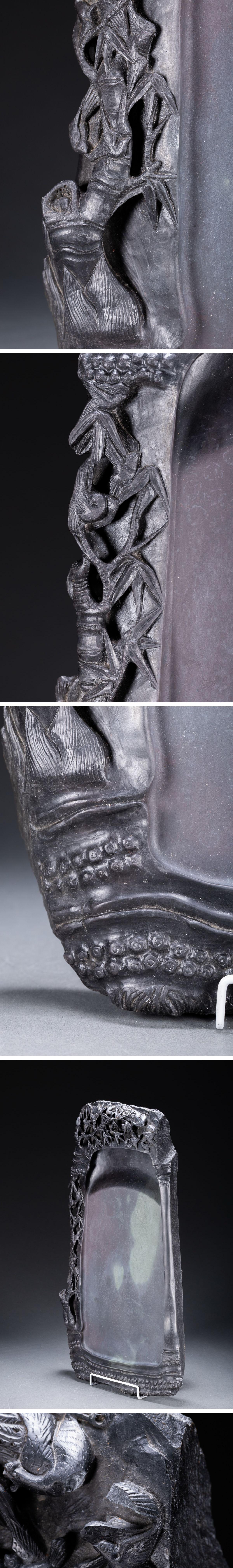 【清】某収集家放出品 鳥竹文端渓蓋硯 雲龍紋硯12㎏ 石眼・石硯・老硯・唐硯・水巌 書道具 中国伝来 古美術 骨董品7L10-14