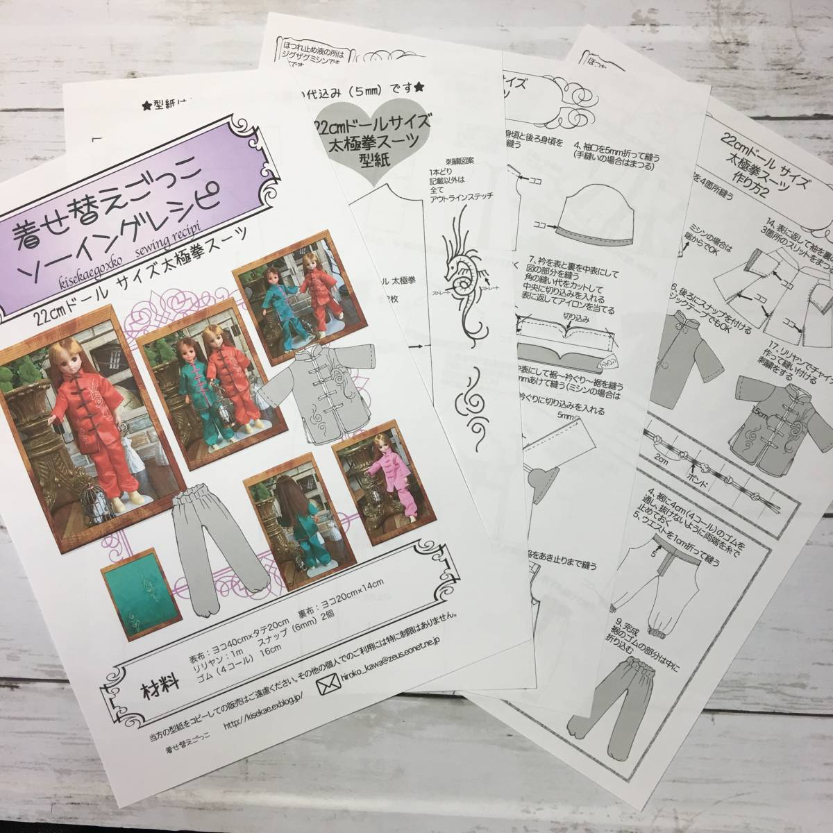 22cmドール<太極拳スーツ>型紙と作り方 ソーイングレシピ 難易度★★★