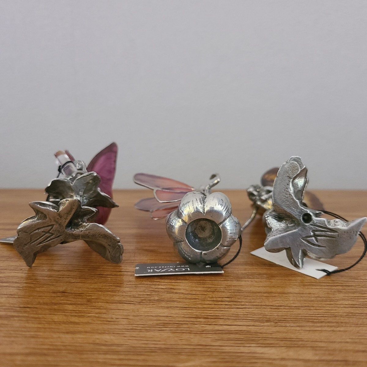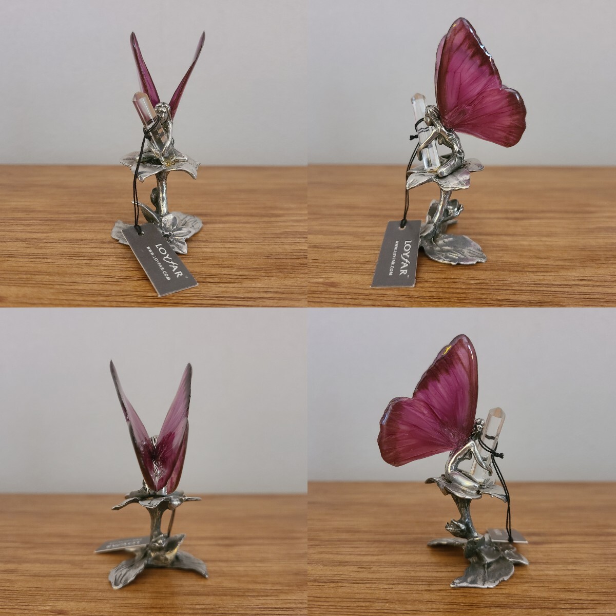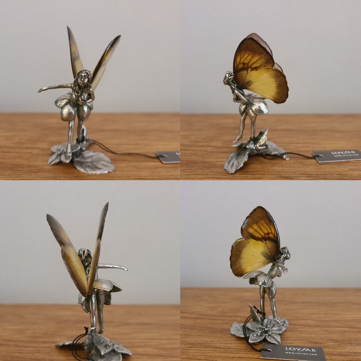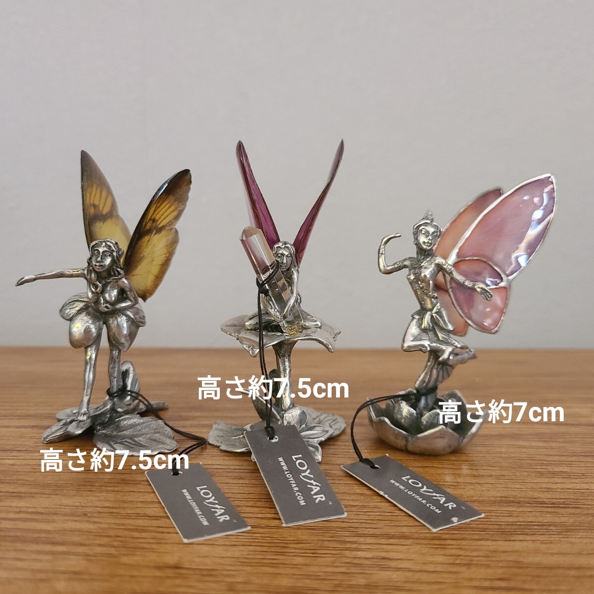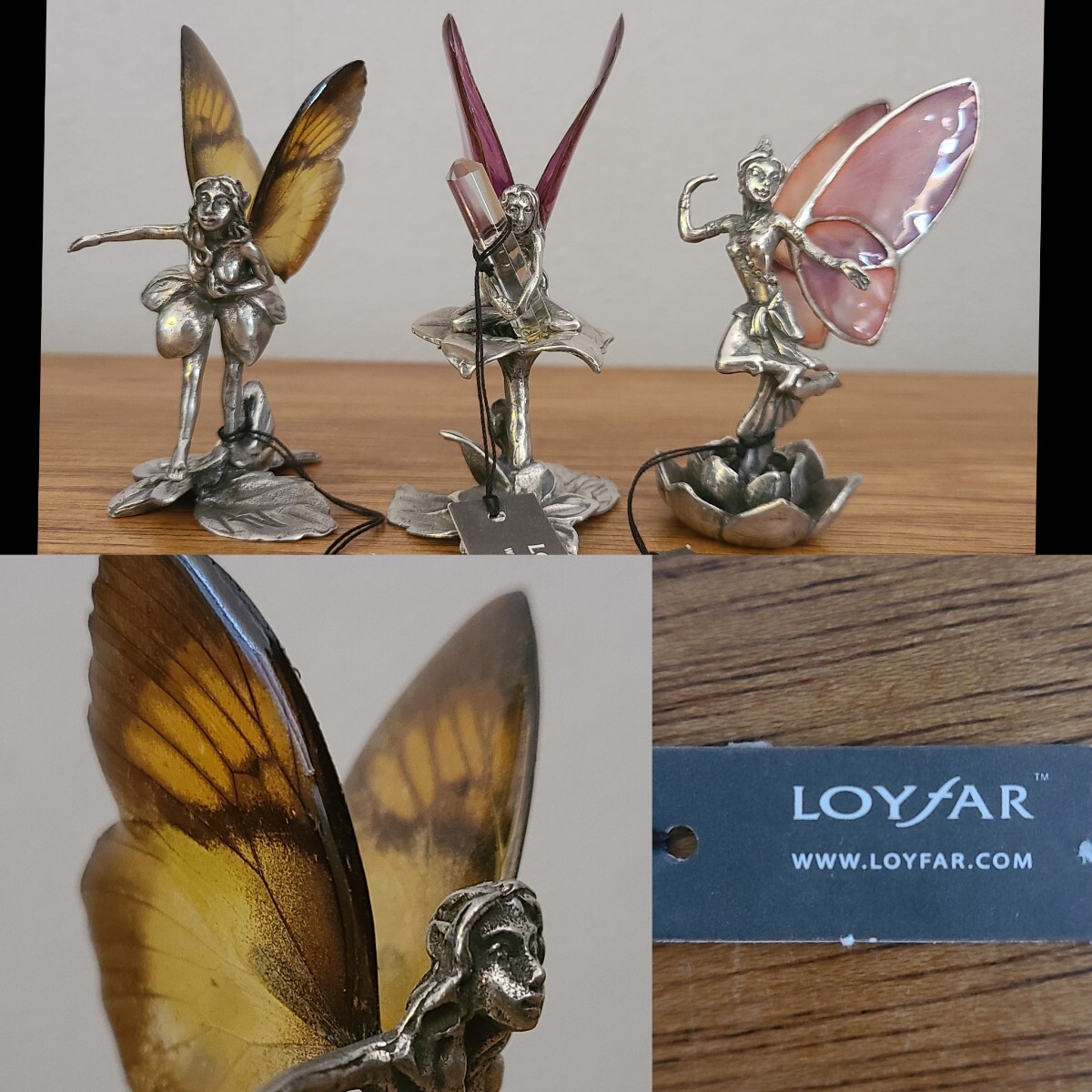 7☆ 3点セット タイ ピューター 錫 LOYFAR 蝶モチーフの妖精 置物 ティンカーベル 妖精 インテリア 雑貨