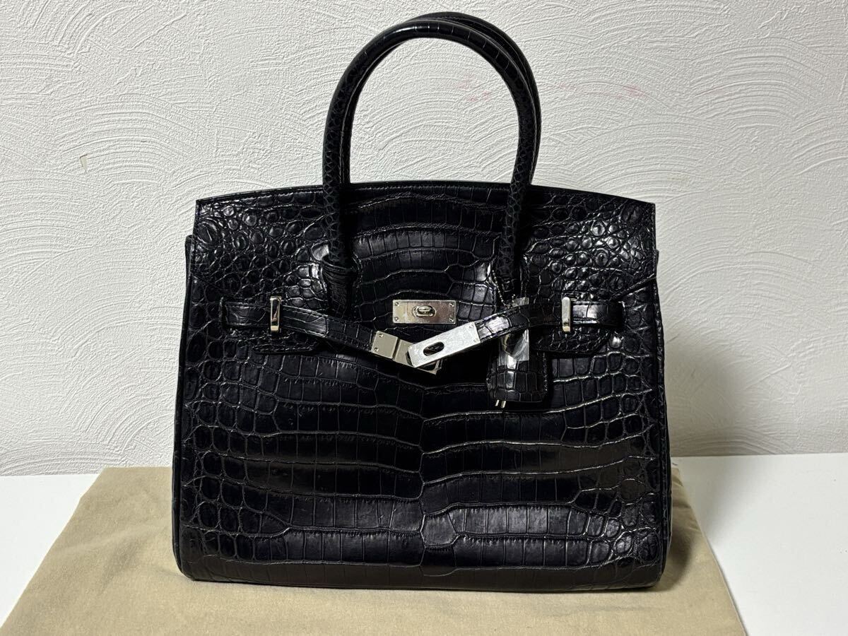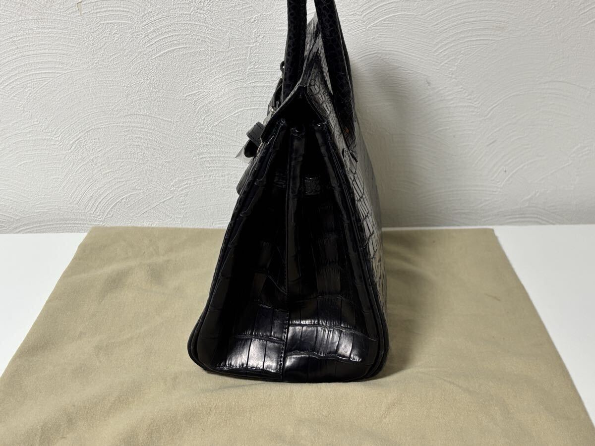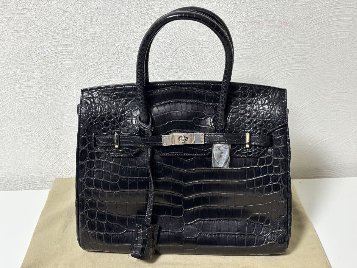 JRA マット クロコダイル バーキン型 ハンドバッグ 日本製 黒 ブラック 本革 | ||||