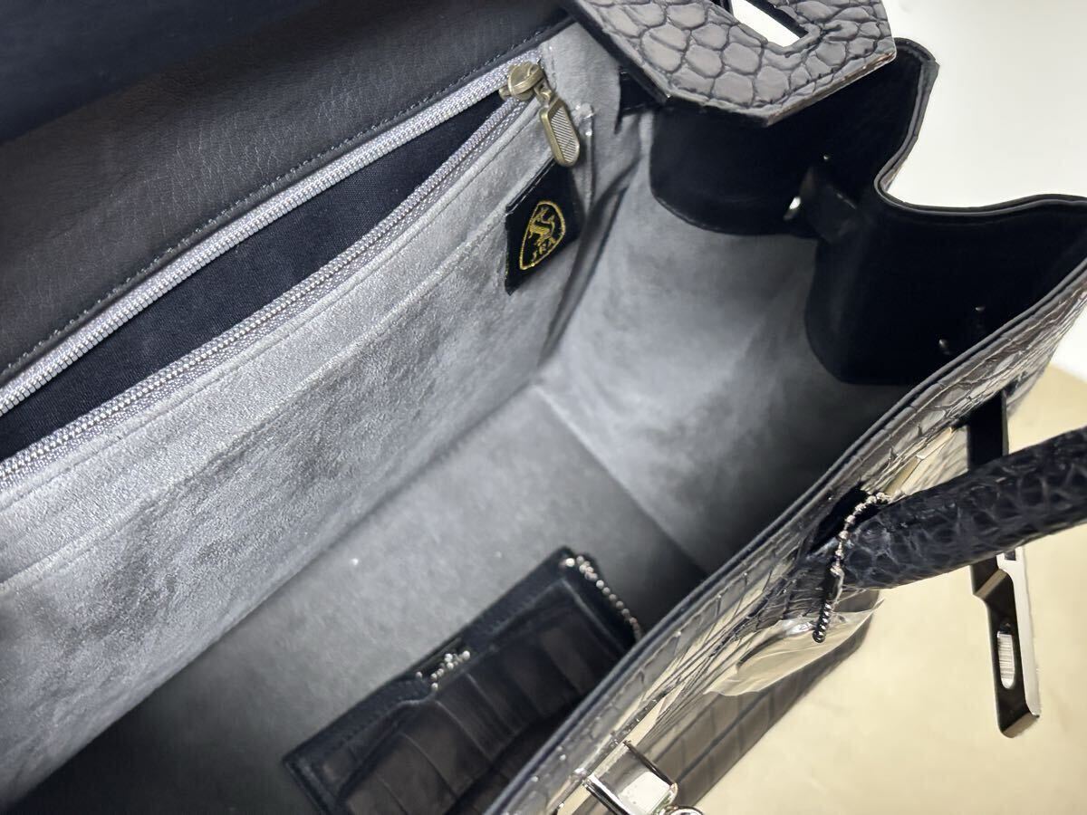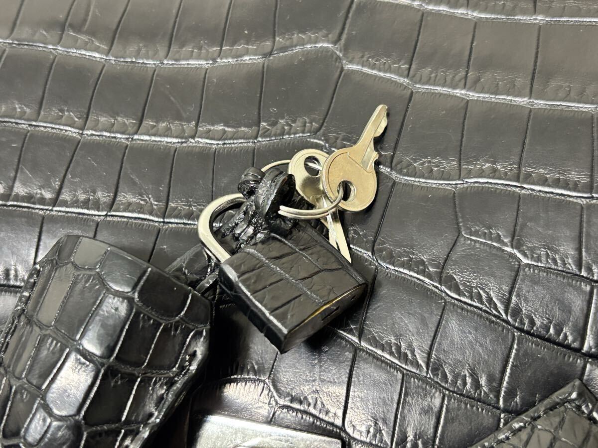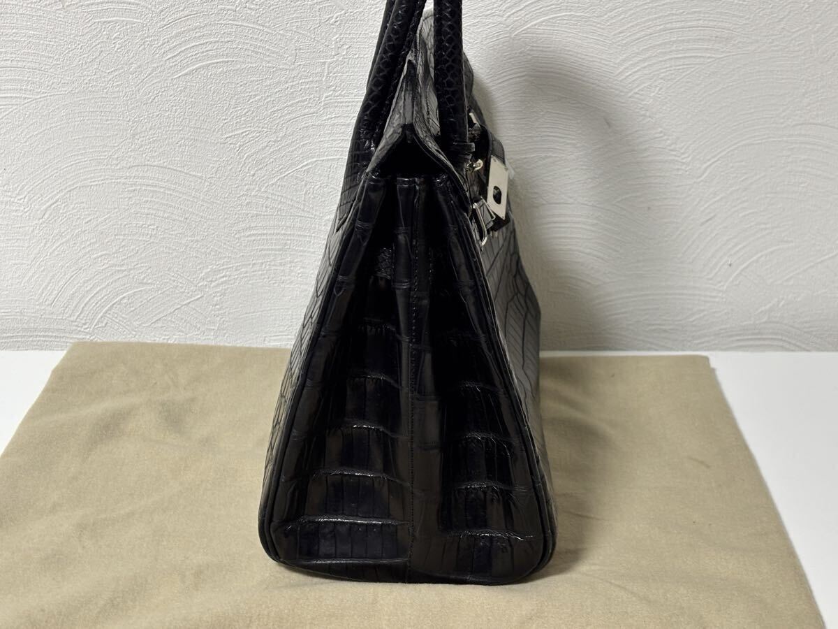 JRA マット クロコダイル バーキン型 ハンドバッグ 日本製 黒 ブラック 本革 | ||||
