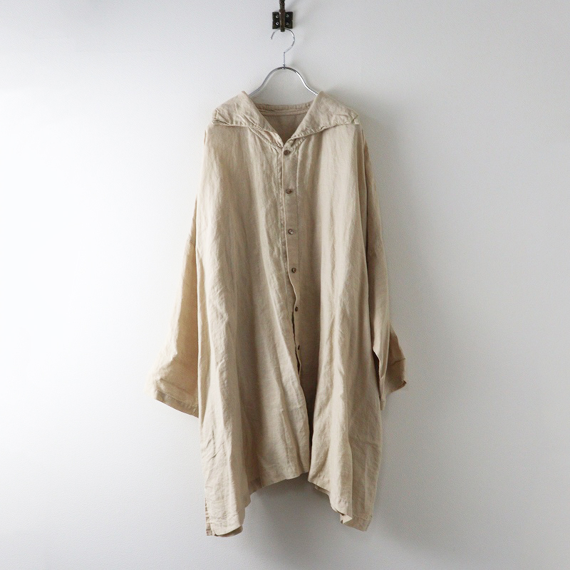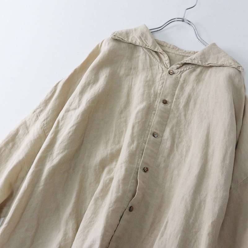 2022SS ネストローブ nest Robe 天然染めウイングカラーオーバーシャツ F\ベージュ ブラウス リネン チュニック【2400014650402】