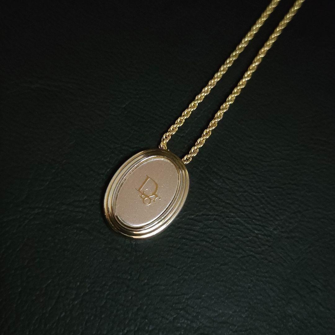 690-3【極美品】Dior  ディオール ネックレス サークル プレート ロゴ ゴールド シルバー ヴィンテージ  アクセサリー ペンダント メンズ ユニセックス