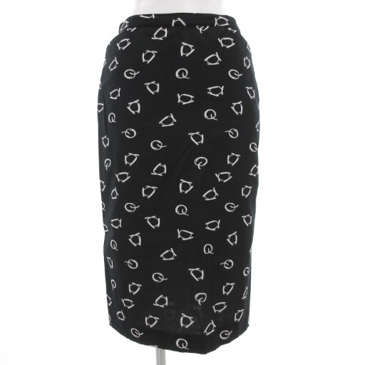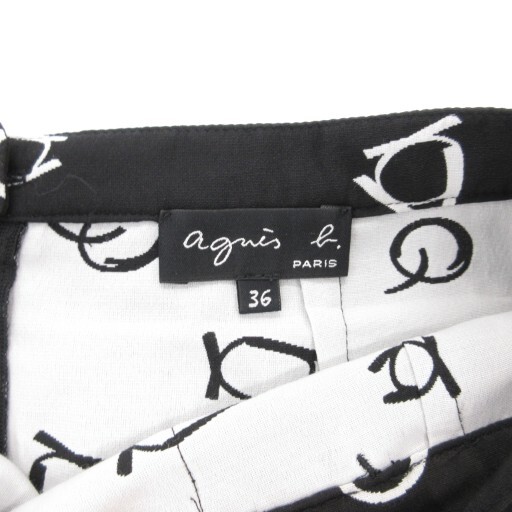 アニエスベー agnes b. タイトスカート ひざ丈 総柄 36 黒 ブラック 白 ホワイト /GV レディース
