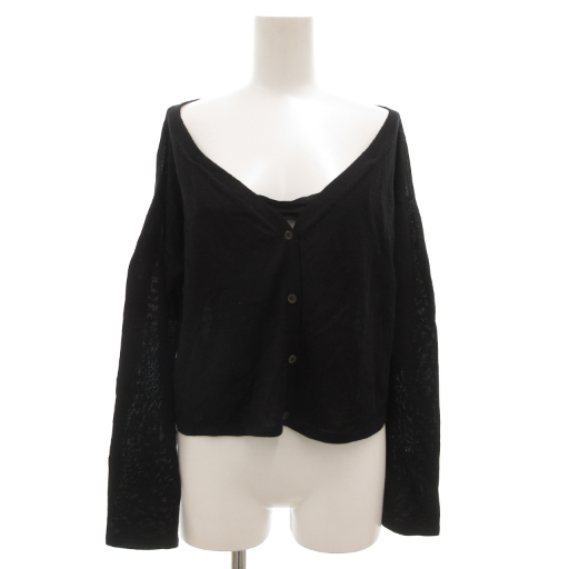 プラダ PRADA カーディガン ニット 長袖 薄手 シルク混 ベルト 38 黒 ブラック /GV ■GY18 レディース
