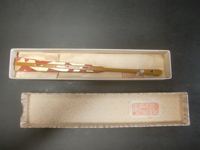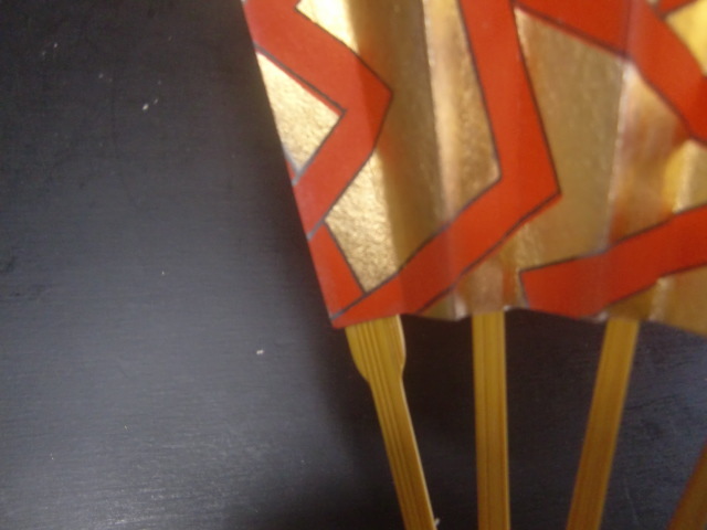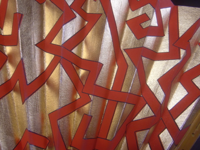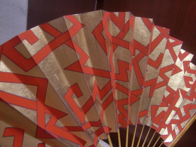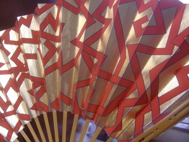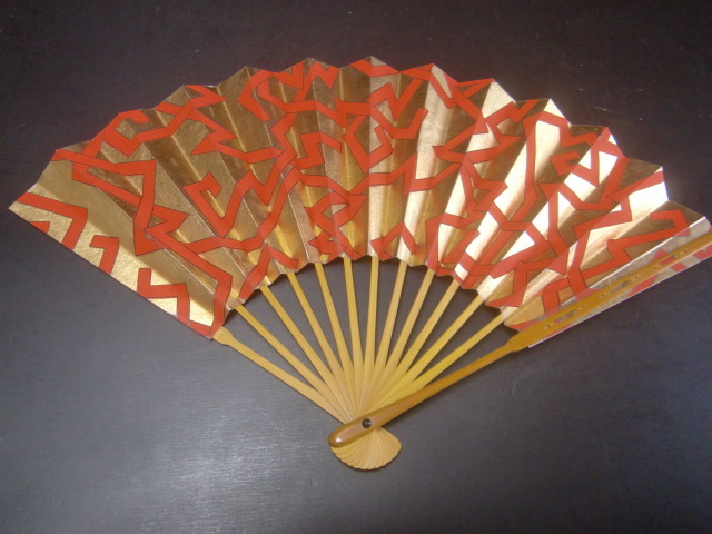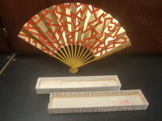 茶道 十松屋福井扇舗 小振りの扇 金地に赤幾何学模様 美品 箱付き サイズ 約19,5cm ゆうパック発送でのお取引とさせていただきます。