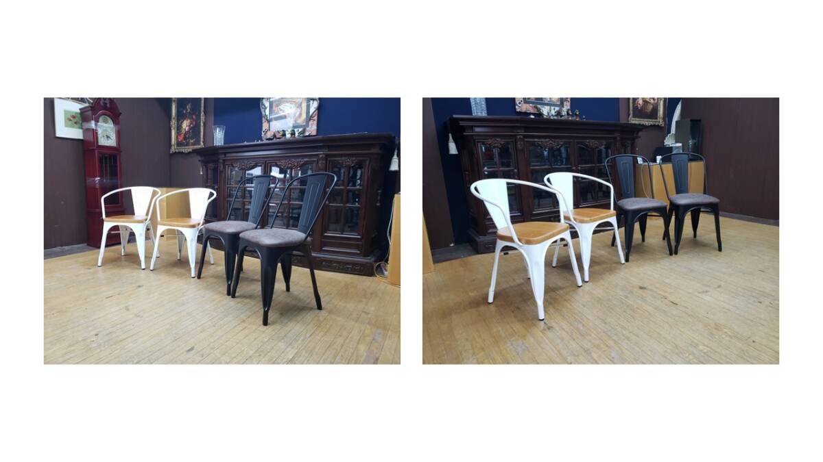 【状態】全体的に特記すべき欠点等も無く綺麗な状態だと思います。機能的にも問題ありません。USEDとなります。画像をご覧になる環境により実際の色と若干の違いがあるかも知れませんがご了承下さい。【サイズ】白幅51㎝×奥行49㎝×高さ71㎝座面までの高さ43㎝黒幅43㎝×奥行50.5㎝×高さ84㎝座面までの高さ45㎝