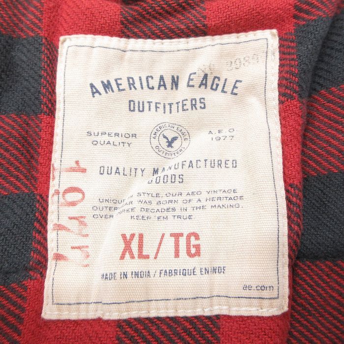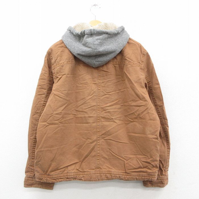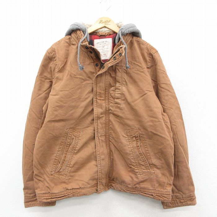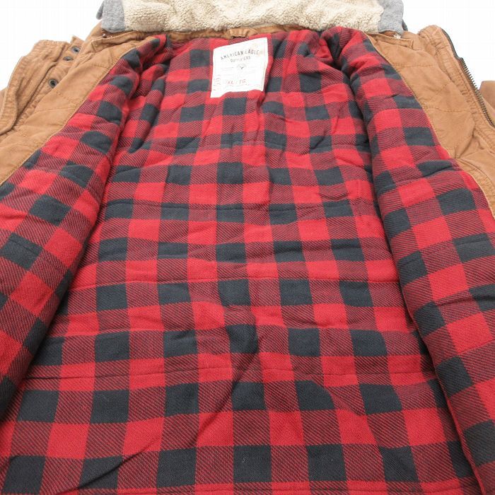 【商品名】 XL★古着 アメリカンイーグル 長袖 ジャケット パーカー メンズ ダック地 大きいサイズ コットン 茶系 内側フランネル フード内側ボア