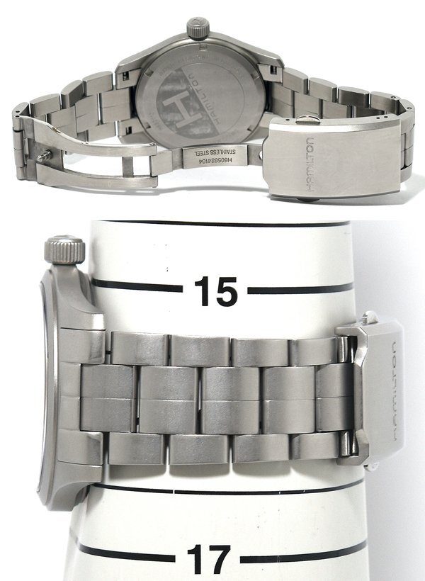 ケース 約:38mm(リューズ含まず)(メーカーHP参照) 腕周り 画像参照ください(余りコマ5つ 約:+4.6cm) ブレス幅 約:18mm~20mm | ||