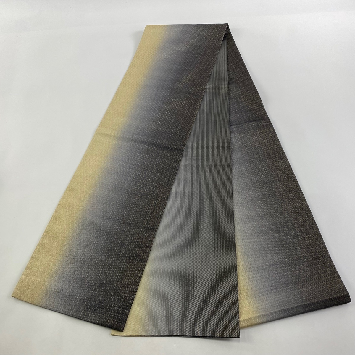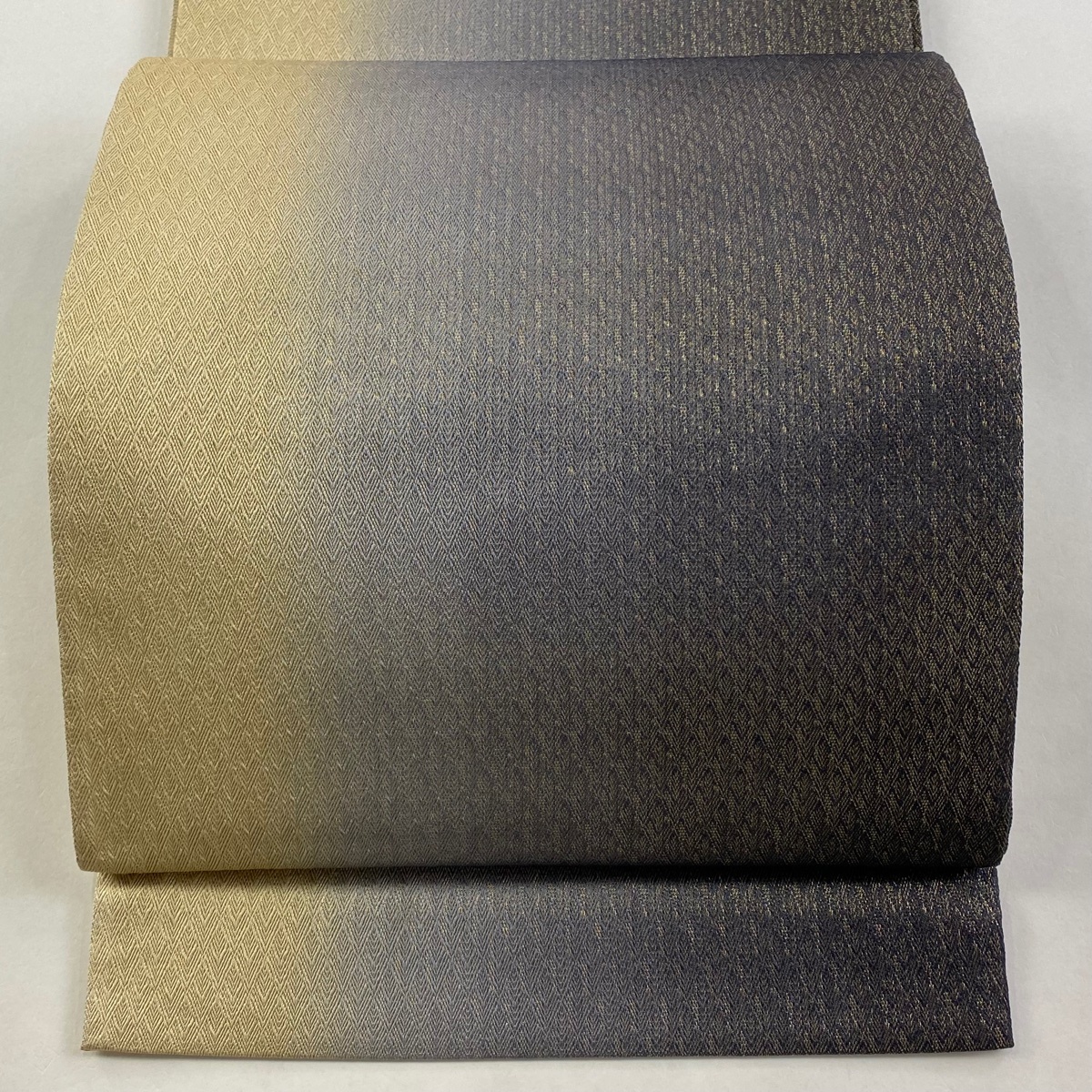 袋帯 美品 秀品 菱 箔 ぼかし 青灰色 全通 正絹 【中古】 |