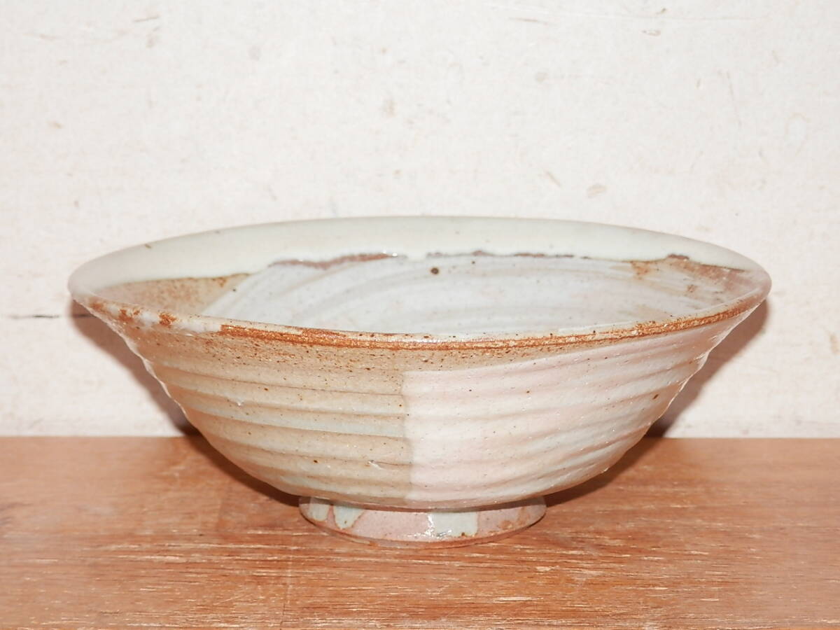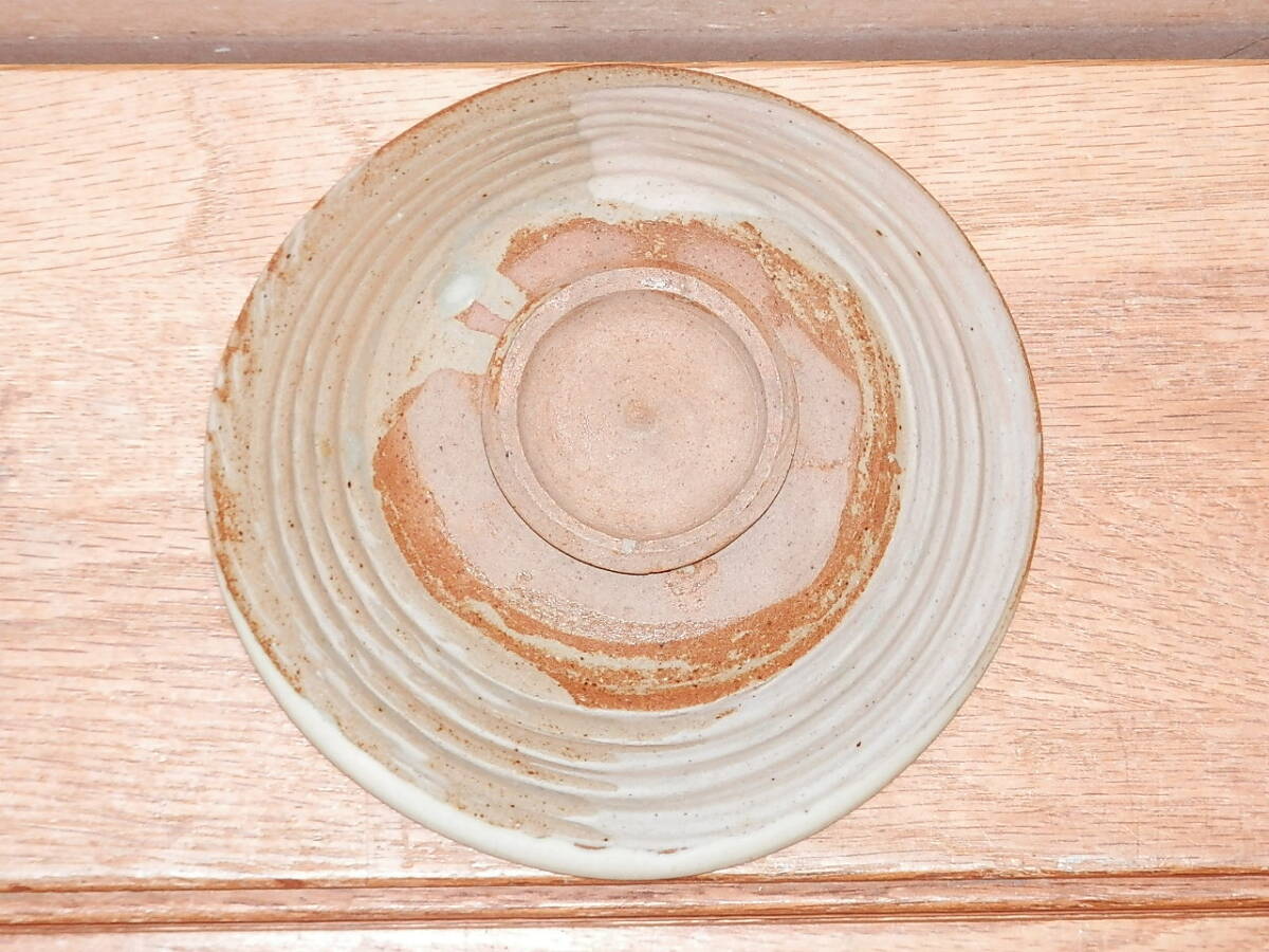 刷毛目 平茶碗 やや楕円形 直径14.5cm 高さ5cm 無銘 箱なし 中古 茶道具 陶器