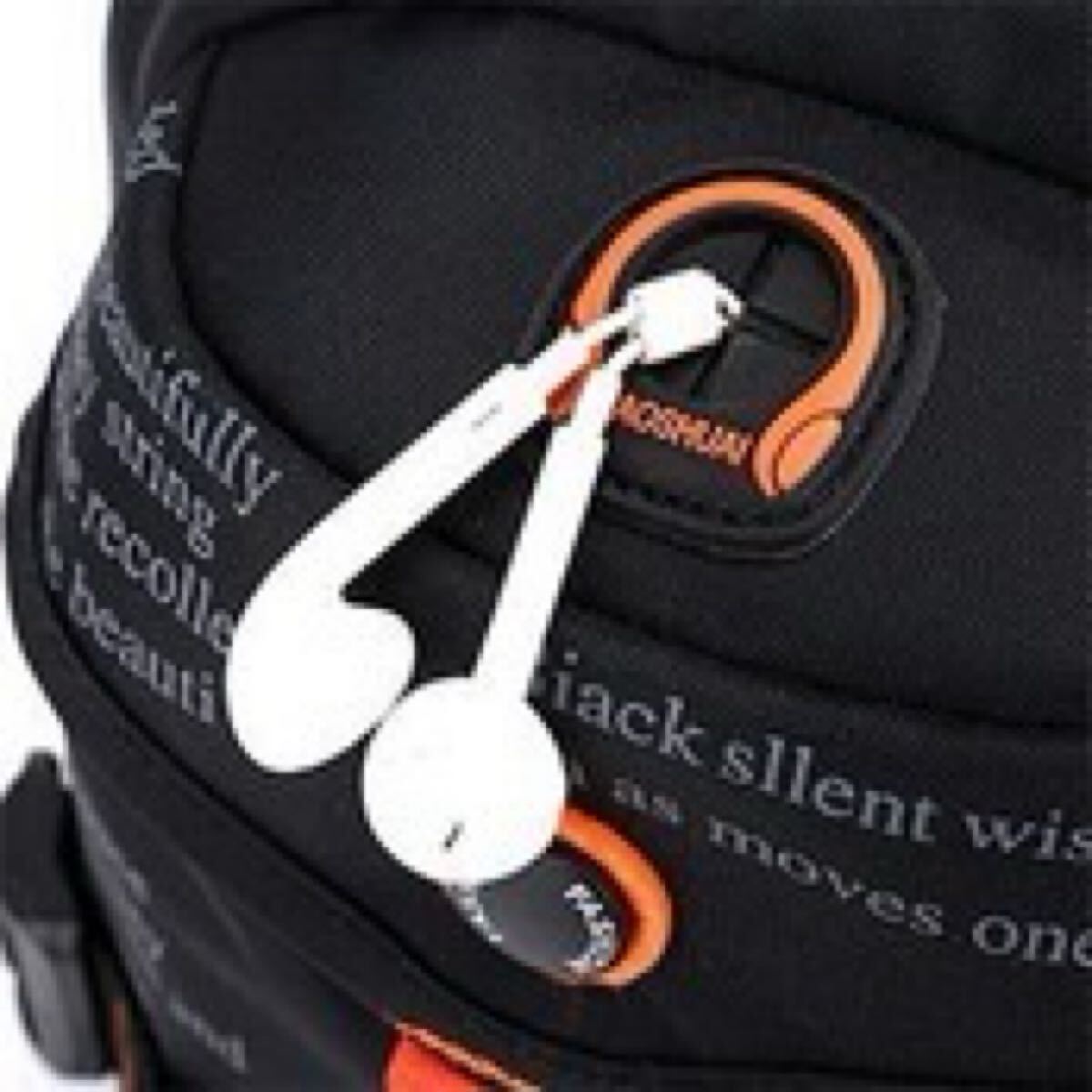バッグにはイヤホン穴が付いており、イヤホンの使用やモバイル電源からの充電に便利です。いつでもどこでも音楽を楽しめます。