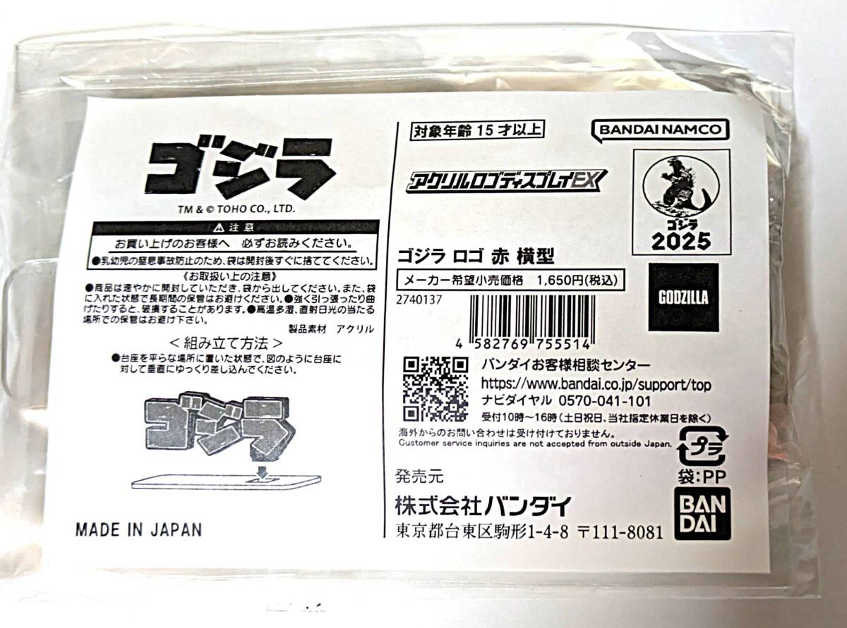 新品 未開封 ☆アクリルロゴディスプレイEX ゴジラ☆ロゴ 赤 横型 GODZILLA | |||