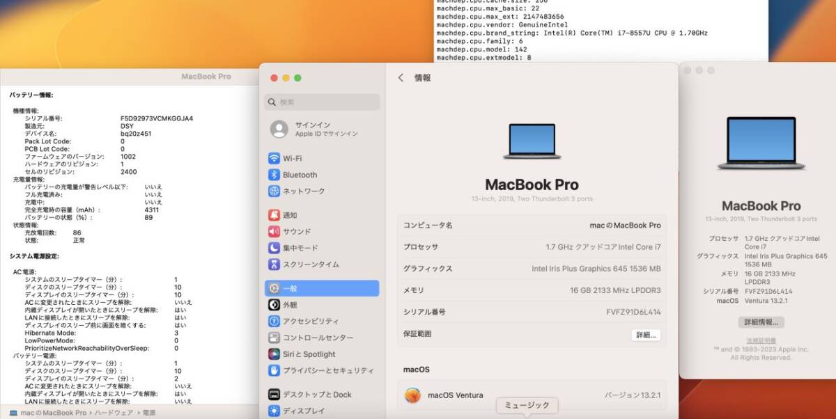 | OS: macOS Ventura ※追加 8000円 [税別]で、正規版Windows 11 Home 64bit(もしくはWindows10 Home 64bit)を追加インストールできます、プロダクトシール付属。 ※OSの切り替え方法 rainbowjp.net/kirikae.html |
