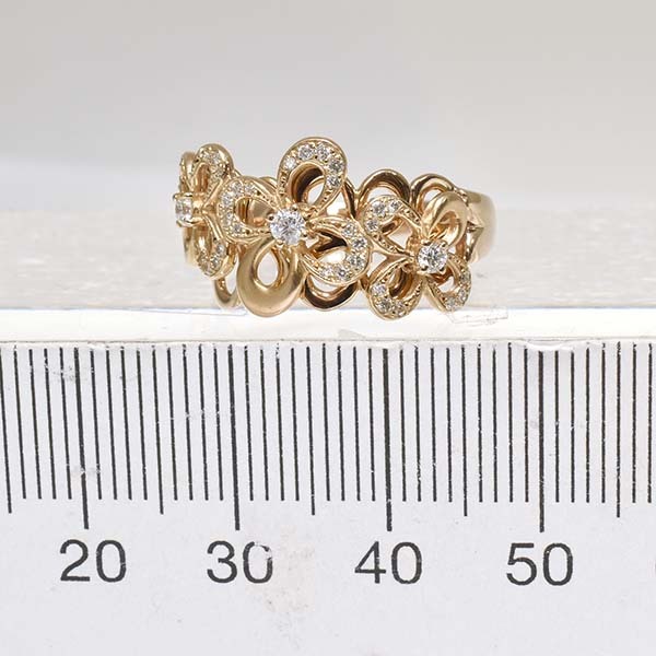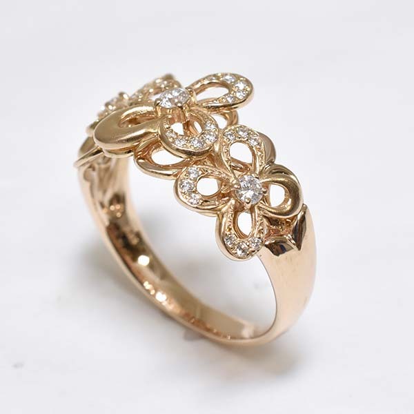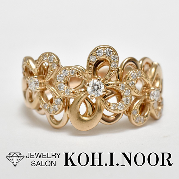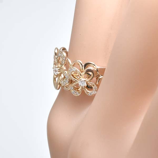 フラワーモチーフをデザインした18金ピンクゴールド製のファッションリング。