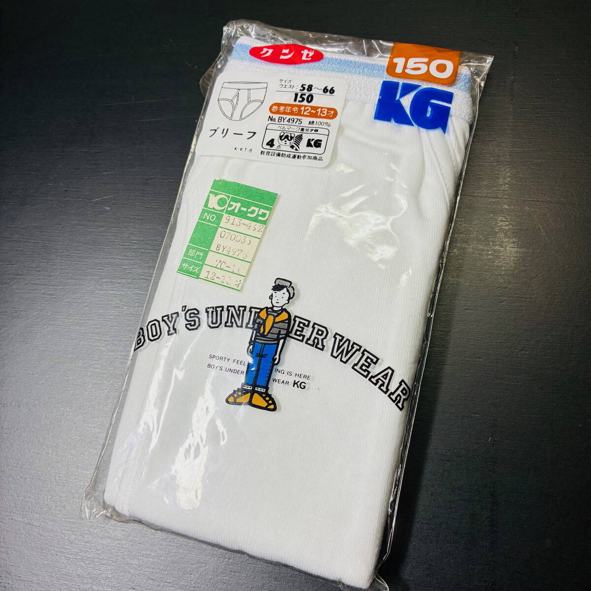 ◆レトロ◆KG こどもグンゼ ブリーフ 白×水色ラインゴム 150cm (参考年令12~13才) 未使用・長期保管品◆