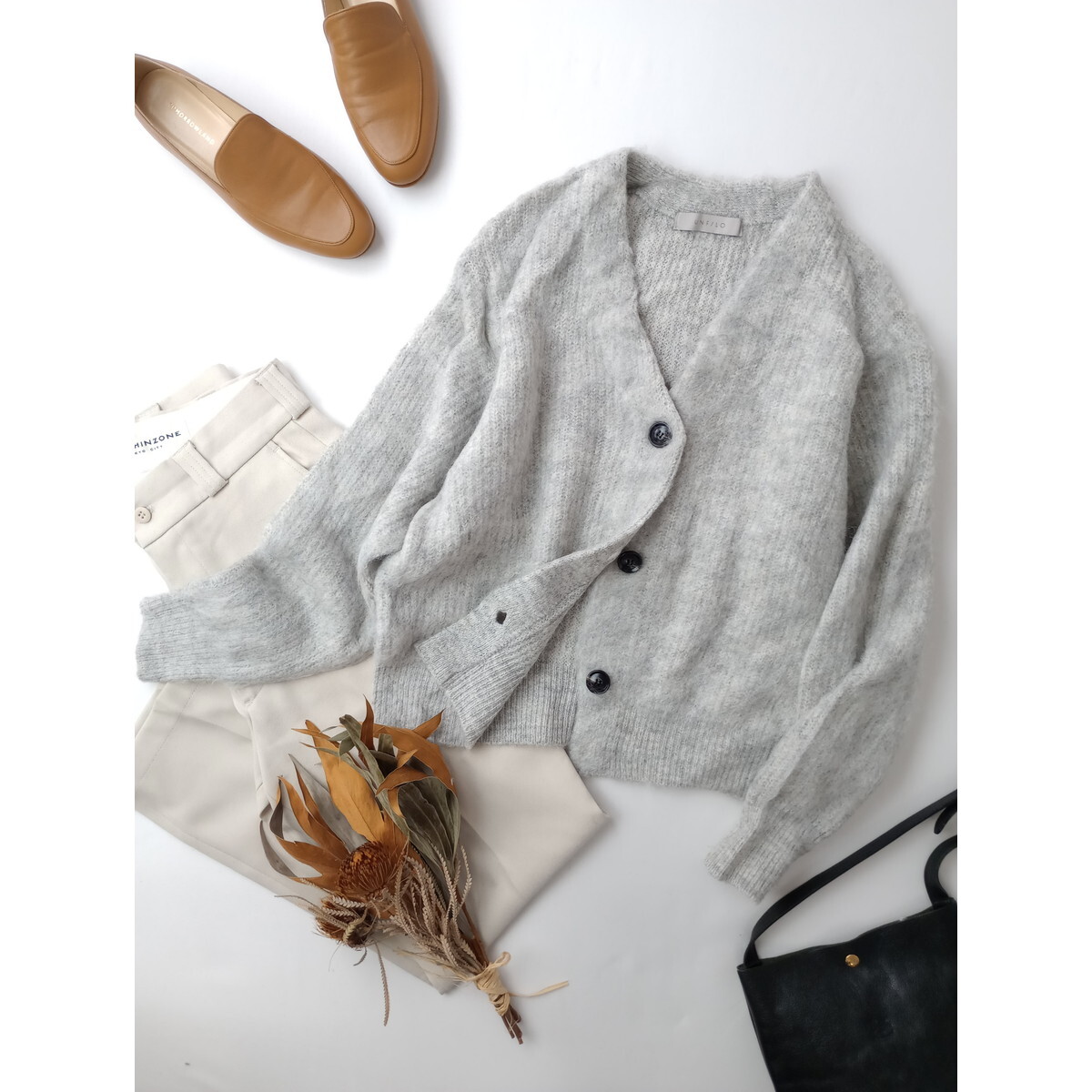 UNFILO アンフィーロ オンワード樫山「もちっとやわらかい」アルパカ ラムウール 毛 混 ミックス ニット カーディガン グレー(31M+8912)