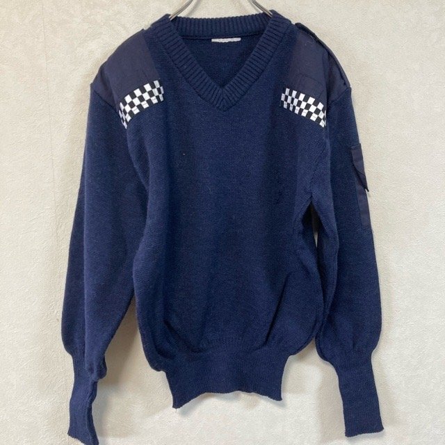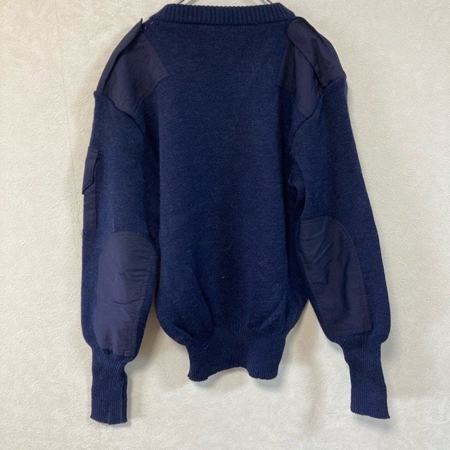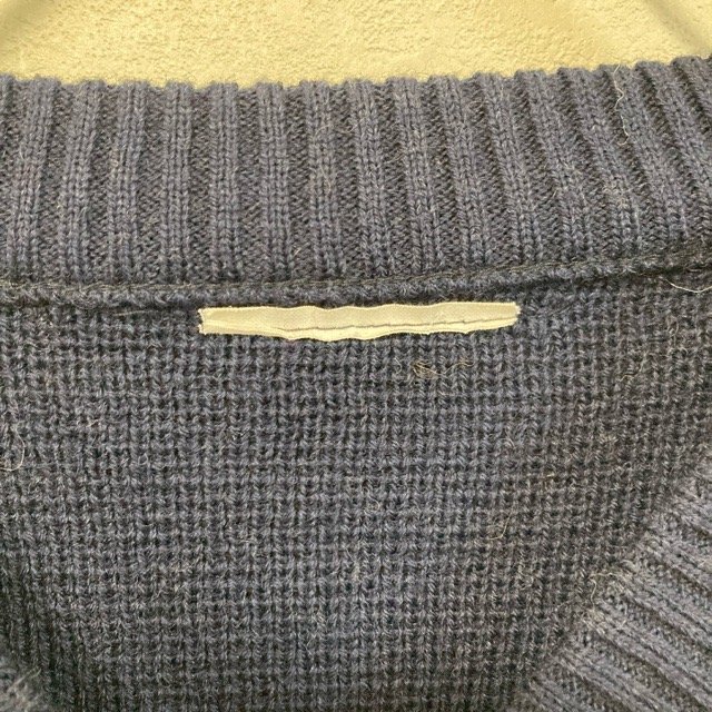 A718 ユーロ古着 L アクリルウール Vネック ニット セーター ネイビー メンズ