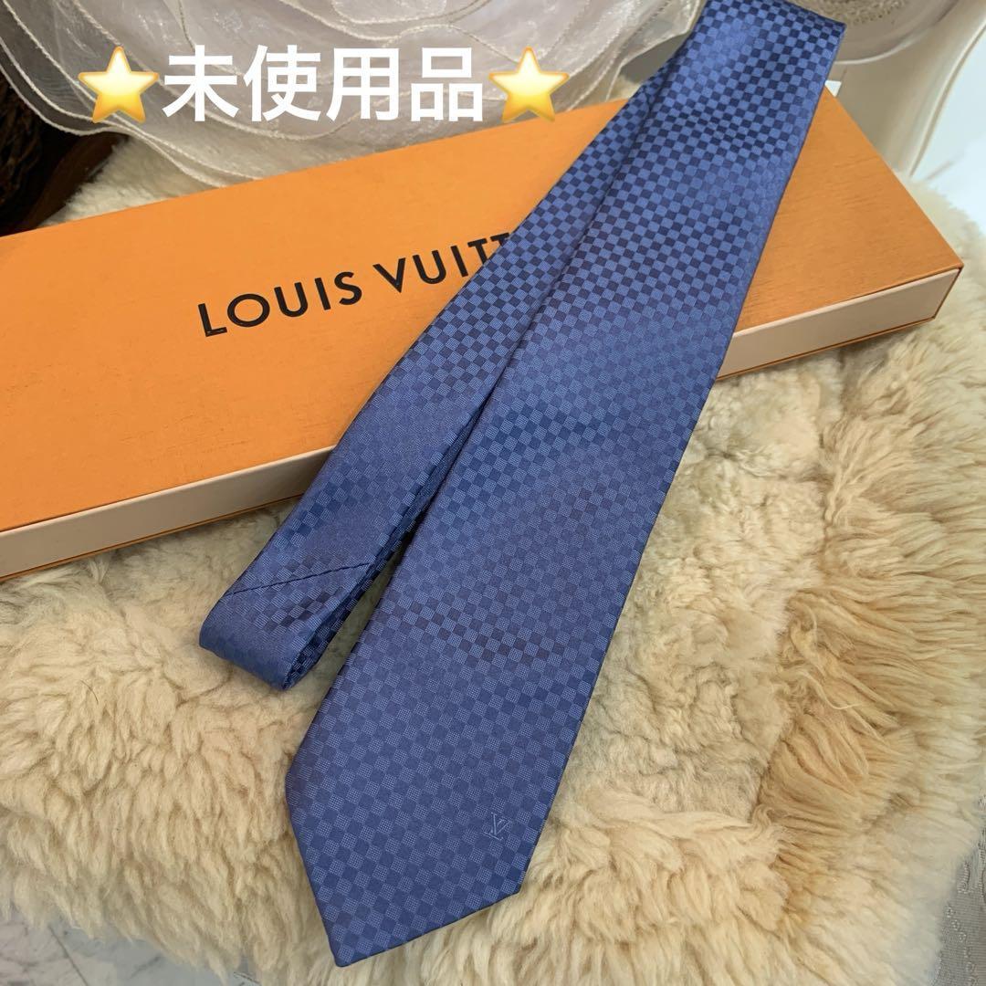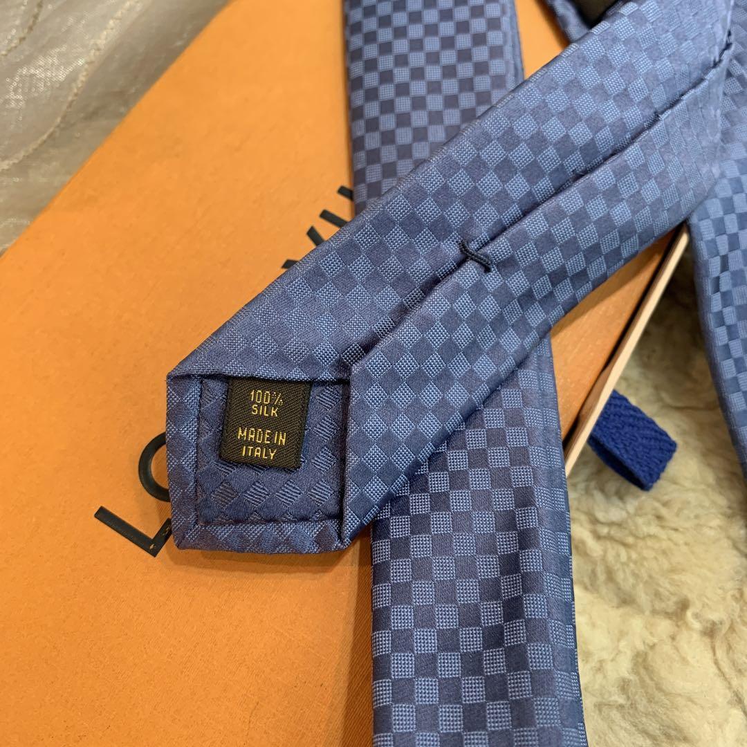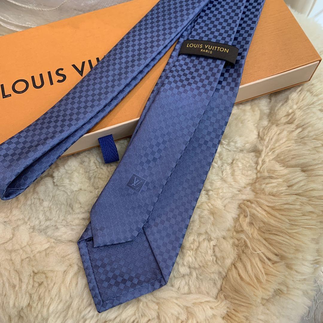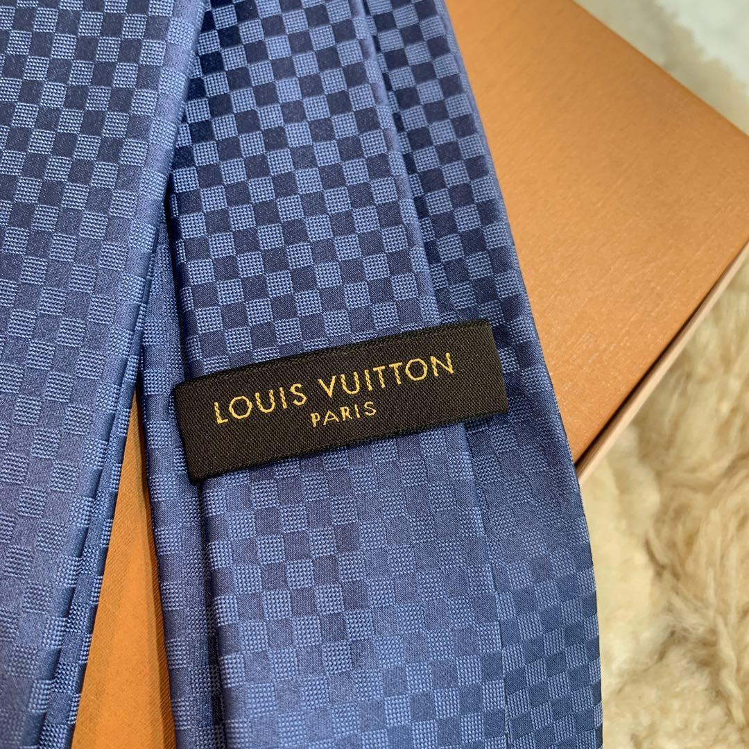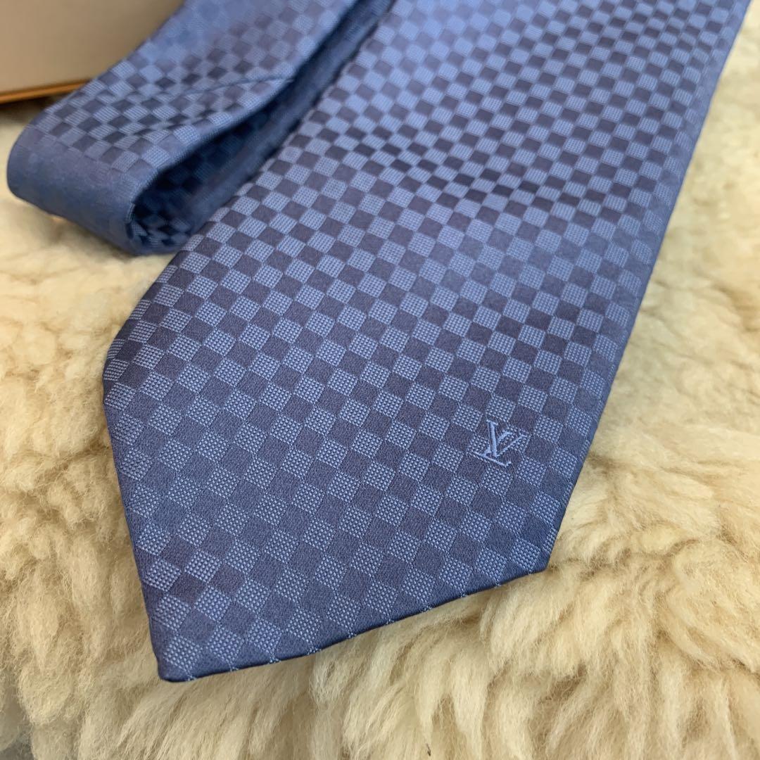 LOUIS VUITTON ルイ・ヴィトン クラヴァット マイクロ ダミエ 8cm シルク ネクタイ ブルーモワイヤン 青 M78747 市松模様 LVロゴ刺繍 細身 メンズ 箱付き ギフト プレゼント