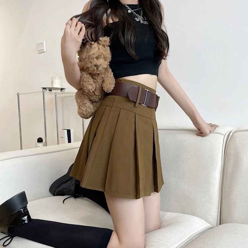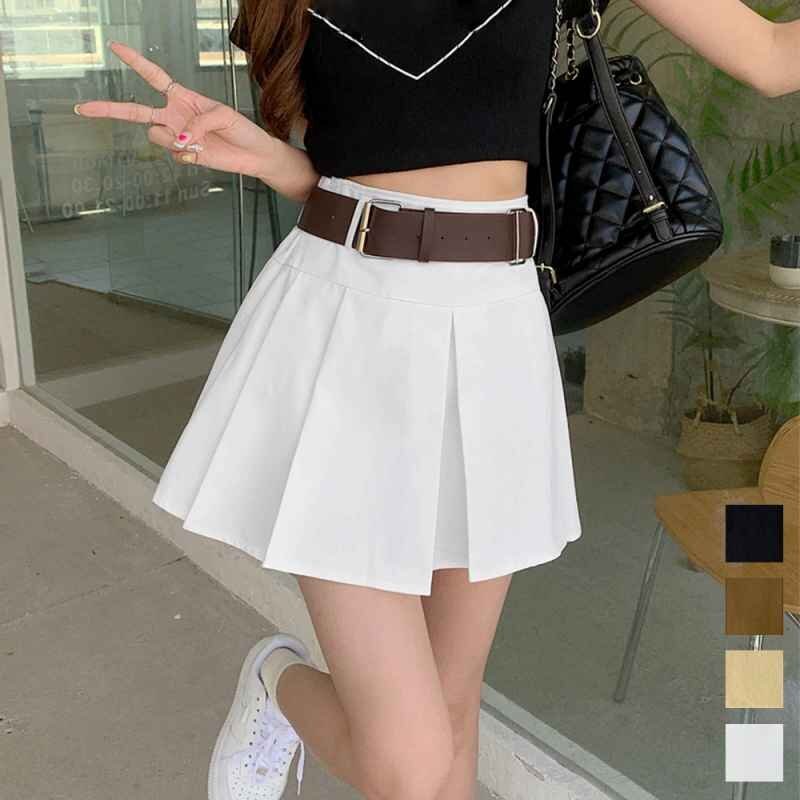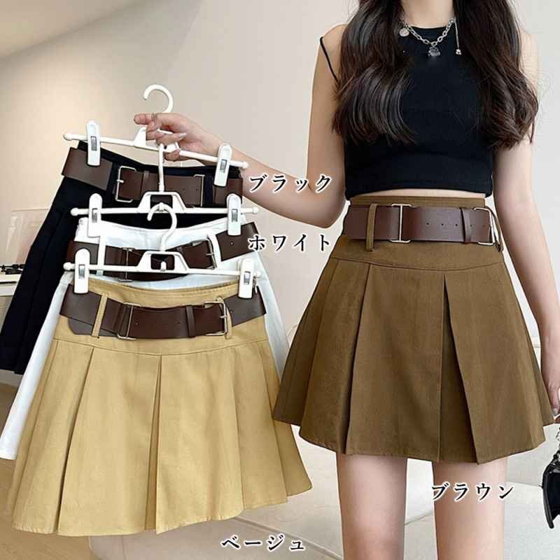 ふわっと広がるプリーツデザインが可愛らしい、ベルト付きボックスミニスカートです。
