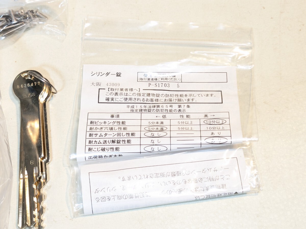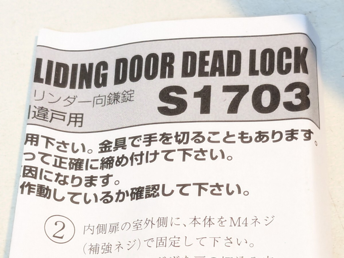 送料無料 GOAL製 引き戸用デッドロック S1703 標準型 L型 引違戸用 シリンダー 取扱説明書付き