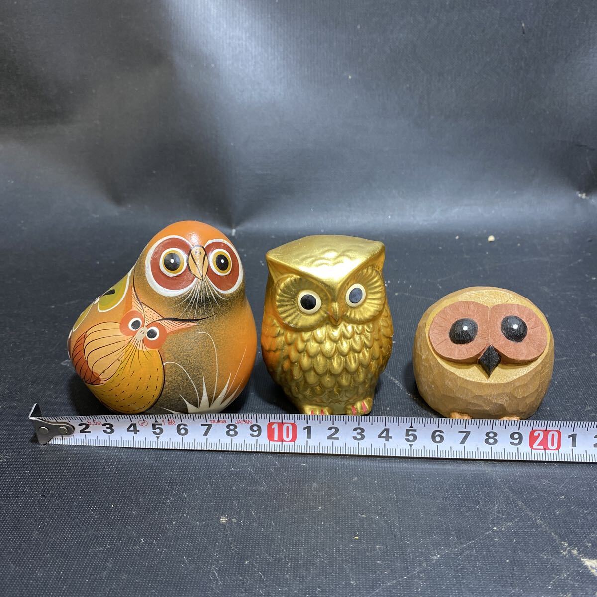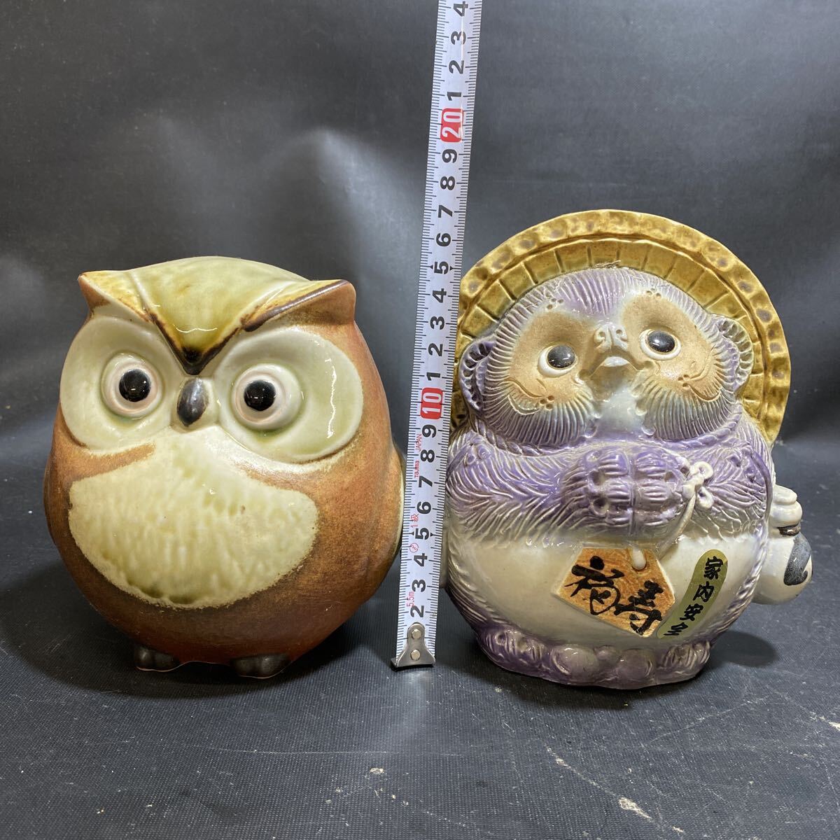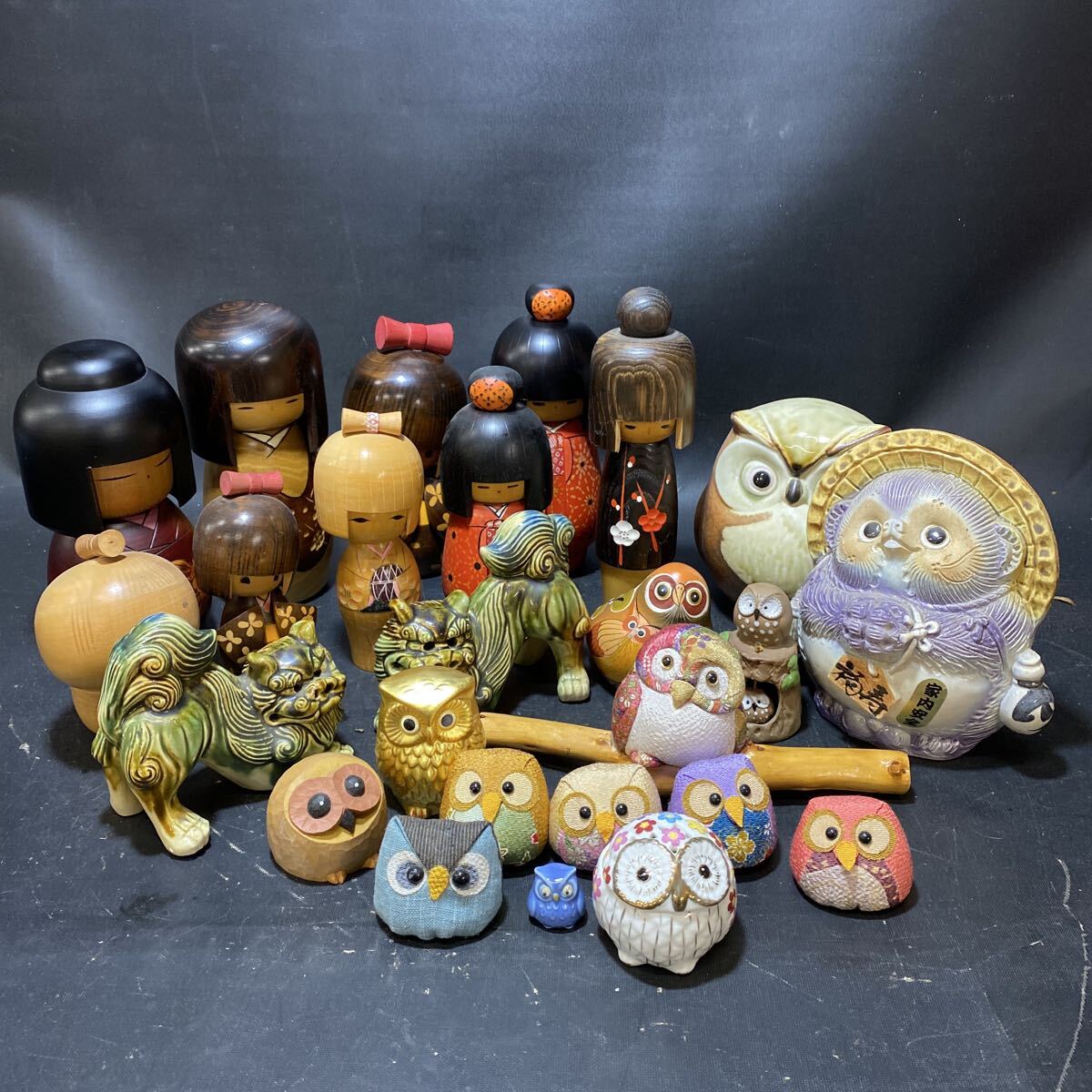 N 6717 [ 和風置物 こけし フクロウ 他 まとめて!!] 縁起物 木製 手造り 陶器製 たぬき シーサー 小物 インテリア コレクション