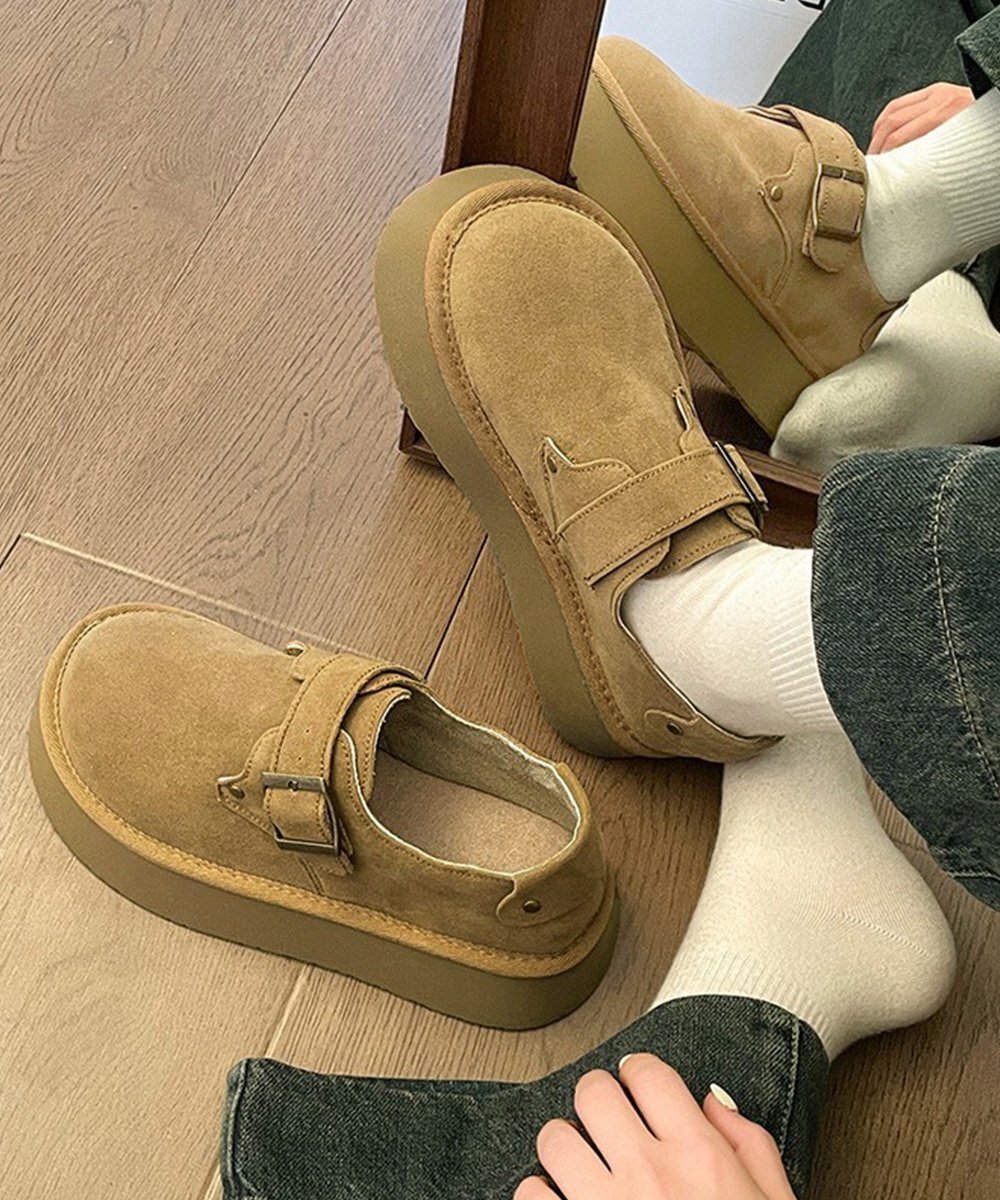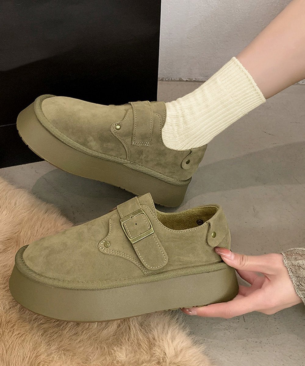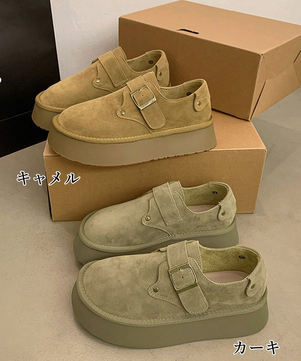 レディース 厚底ソール ローファーフェイクスエード プラットシューズ 美脚 カジュアル靴 歩きやすい 秋冬新作スリッポン