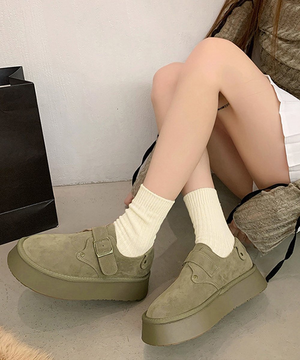 スエード調の素材を使用した、カジュアルなデザインの厚底シューズ