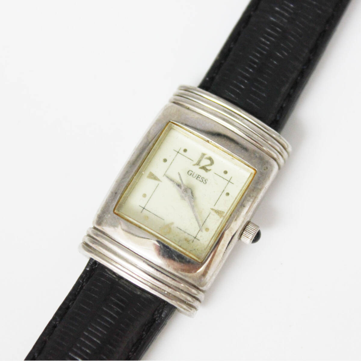 W251015-47 GUESS ゲス レディース腕時計 クォーツ ジャンク 文字盤アイボリー スクエア ベルト破損