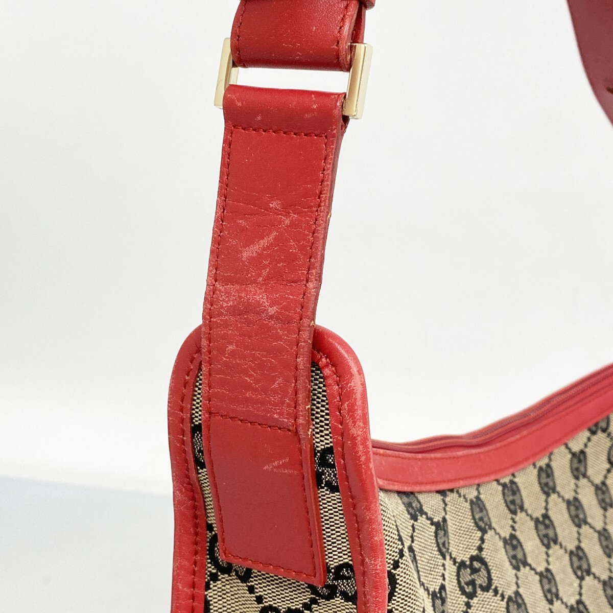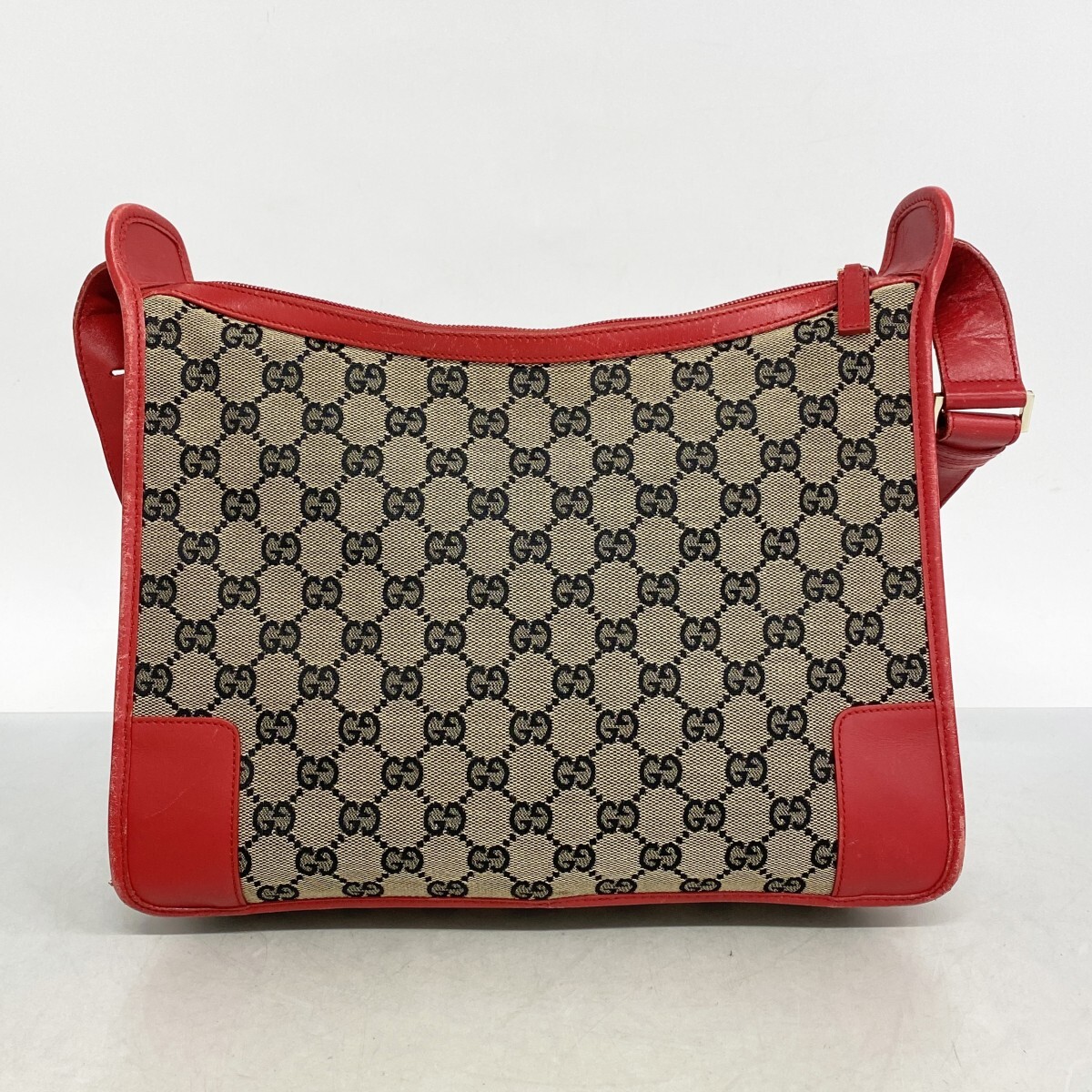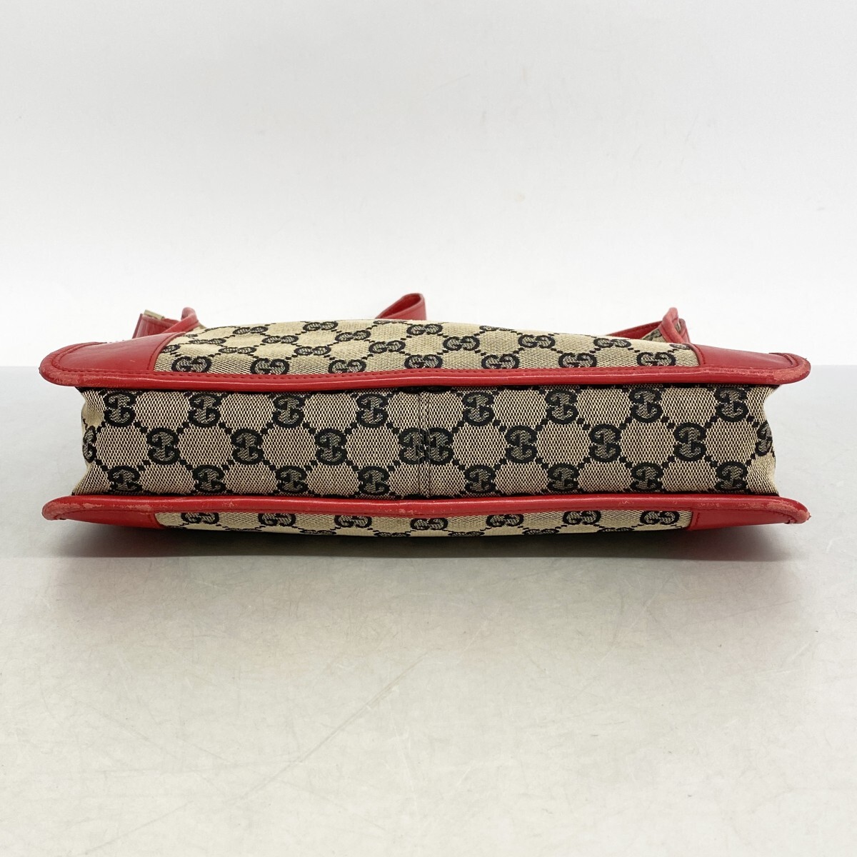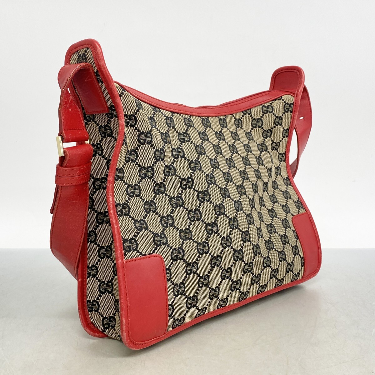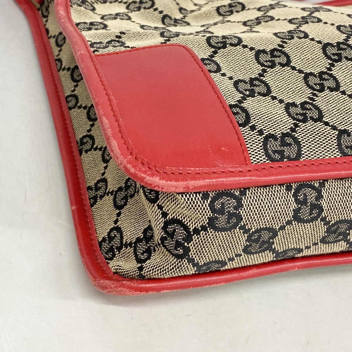 ★SALE【5ie6046-h】グッチ ショルダーバッグ GGキャンバス 001 4205 キャンバス ブラウン レッド ゴールド金具【中古】レディース