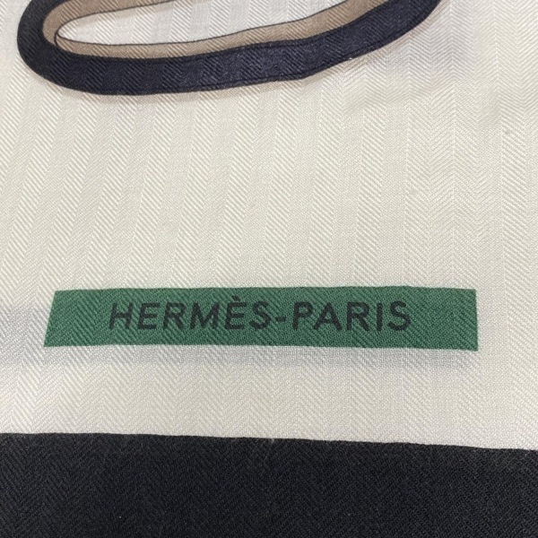 エルメス HERMES ストール(ショール) H244039S カレジェアン/ショール カレ140 カシミヤ、シルク アイボリー×黒×マルチ マフラー