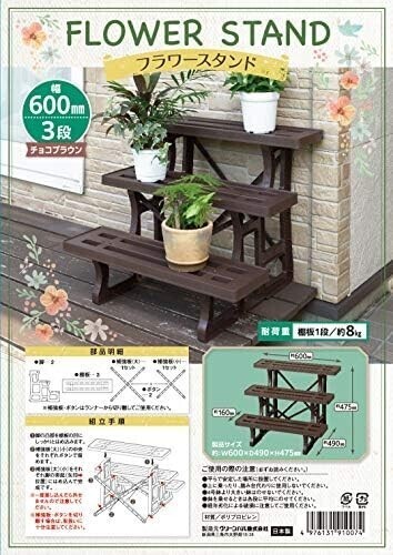 ☆新品☆グリーンパル フラワースタンド3段600mm チョコブラウン ポリプロピレン (PP)