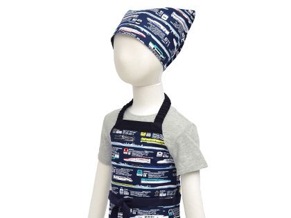 子供用 キッズエプロン 男の子 三角巾 セット 小学生 着脱簡単 100-120 出発進行スーパーエクスプレス カラフルキャンディスタイル N1