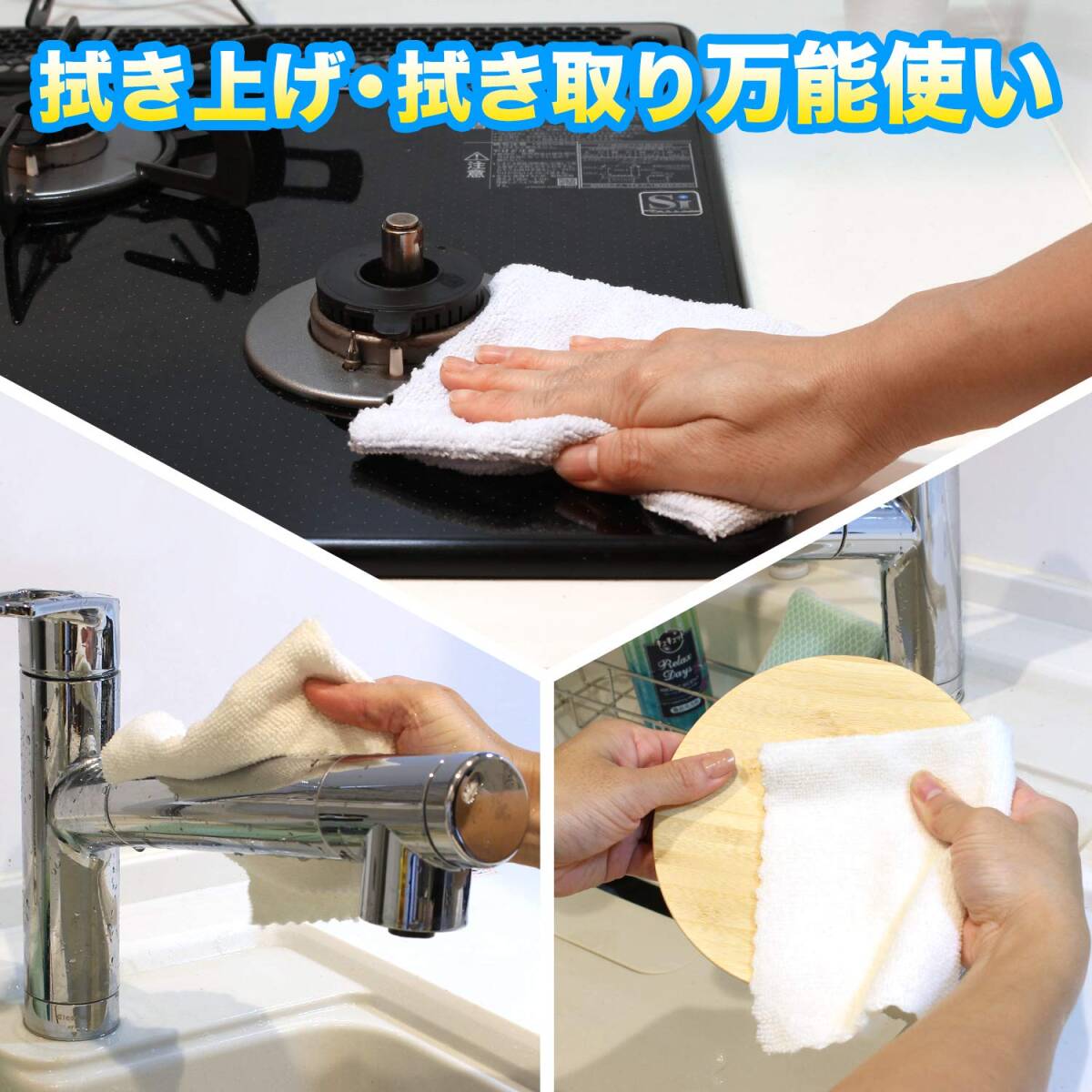 ●洗剤を使わずに汚れを落とし、吸水力もバツグン高機能ふきんです。●マイクロファイバー(超極細繊維)の多角形の鋭いエッジが、汚れをしっかりこすり落します。●立体構造繊維なので、吸水力・吸油力がバツグンです!●ミクロ繊維だから、落とした汚れを残さず繊維内に取り込みます。●カラ拭き・水拭きのどちらでもお使いいただけます。●フチ部分はヒートカット(熱処理)されているので、ほつれにくく、フラットで使いやすい形状です。●テーブルやシンク周り、食器やグラス、カトラリー、コンロ周りや電子レンジなどのキッチンの汚れに。もちろん、リビング清掃にもお使いいただけます。●大容量10枚入り。かわいいブルーと定番ホワイトの2色セットです。