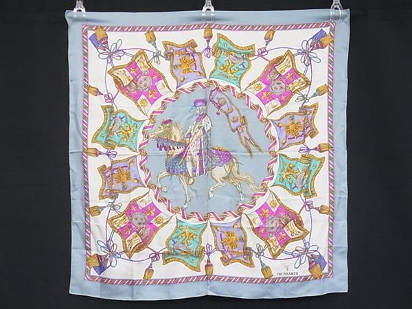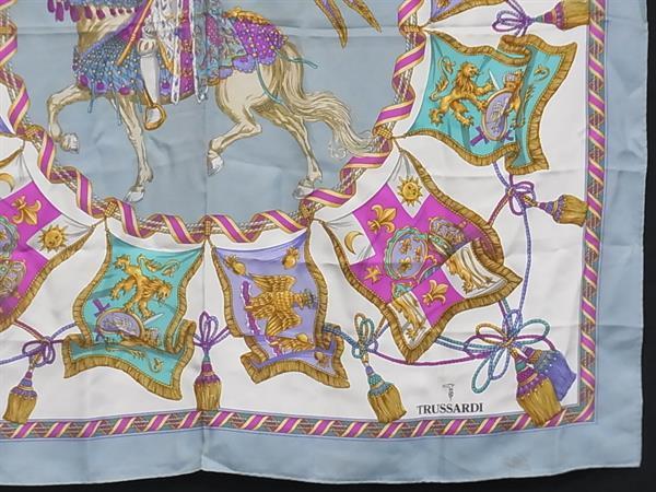 TRUSSARDI トラサルディ シルク100% 総柄 スカーフ ストール ショール レディース ライトブルー系×マルチカラー DI4072