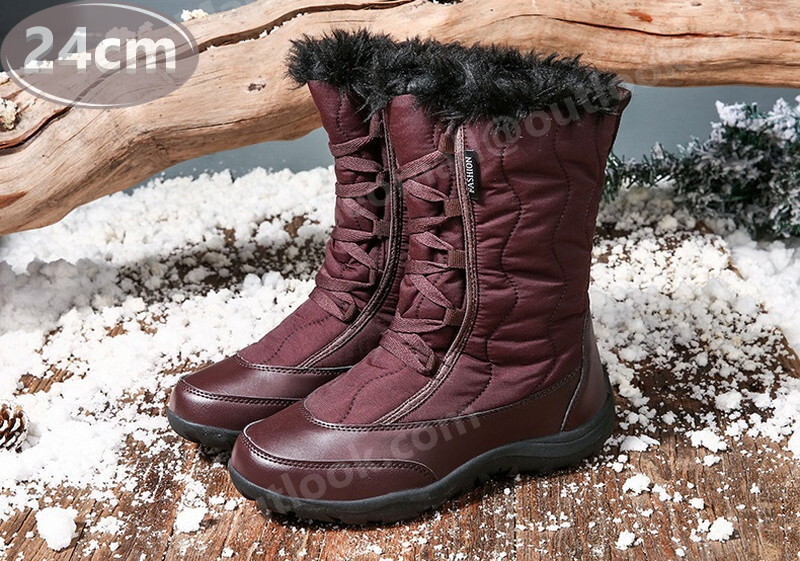 レディース スノーシューズ 【970】 レッド 24.0cm ムートンブーツ スニーカー ウィンターブーツ 裏起毛 防水 防寒 防滑 冬用靴 綿靴