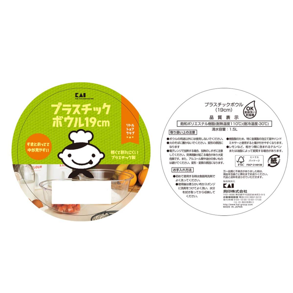 貝印 KAI プラスチック ボウル 19cm リトルシェフクラブ 日本製 DL7205