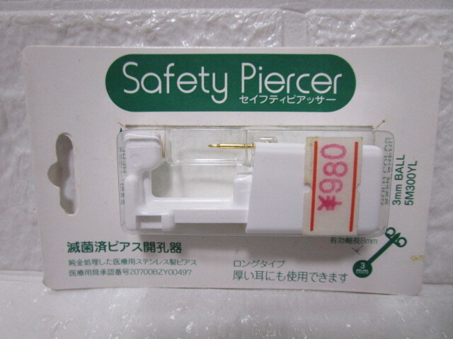 送料込み!ピアス セイフティピアッサー(Safety Piercer医療用ステンレス製ピアス滅菌済ピアス開孔器ロングタイプ)